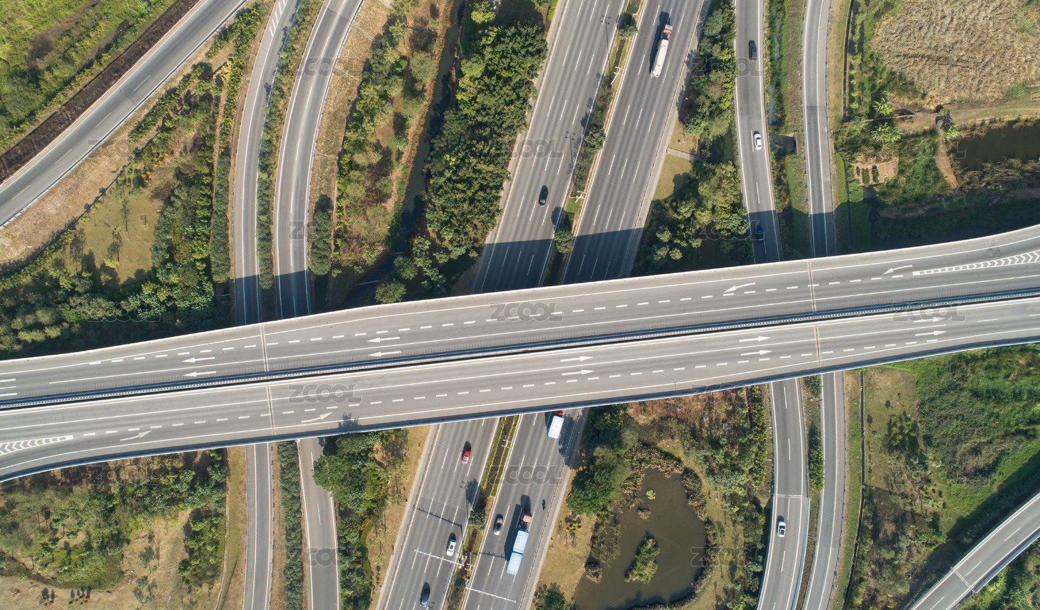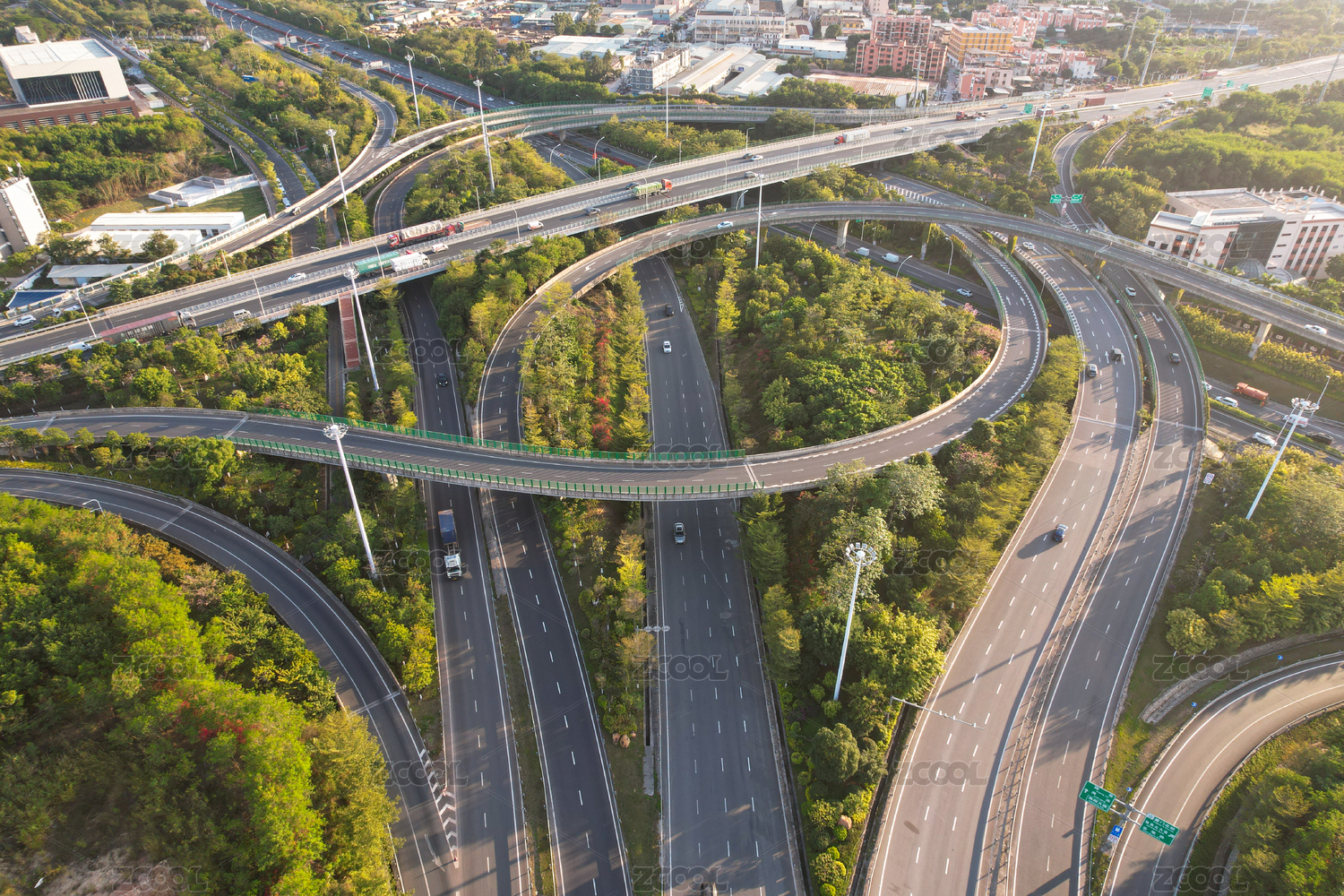 空中视角城市立交桥交通枢纽网络