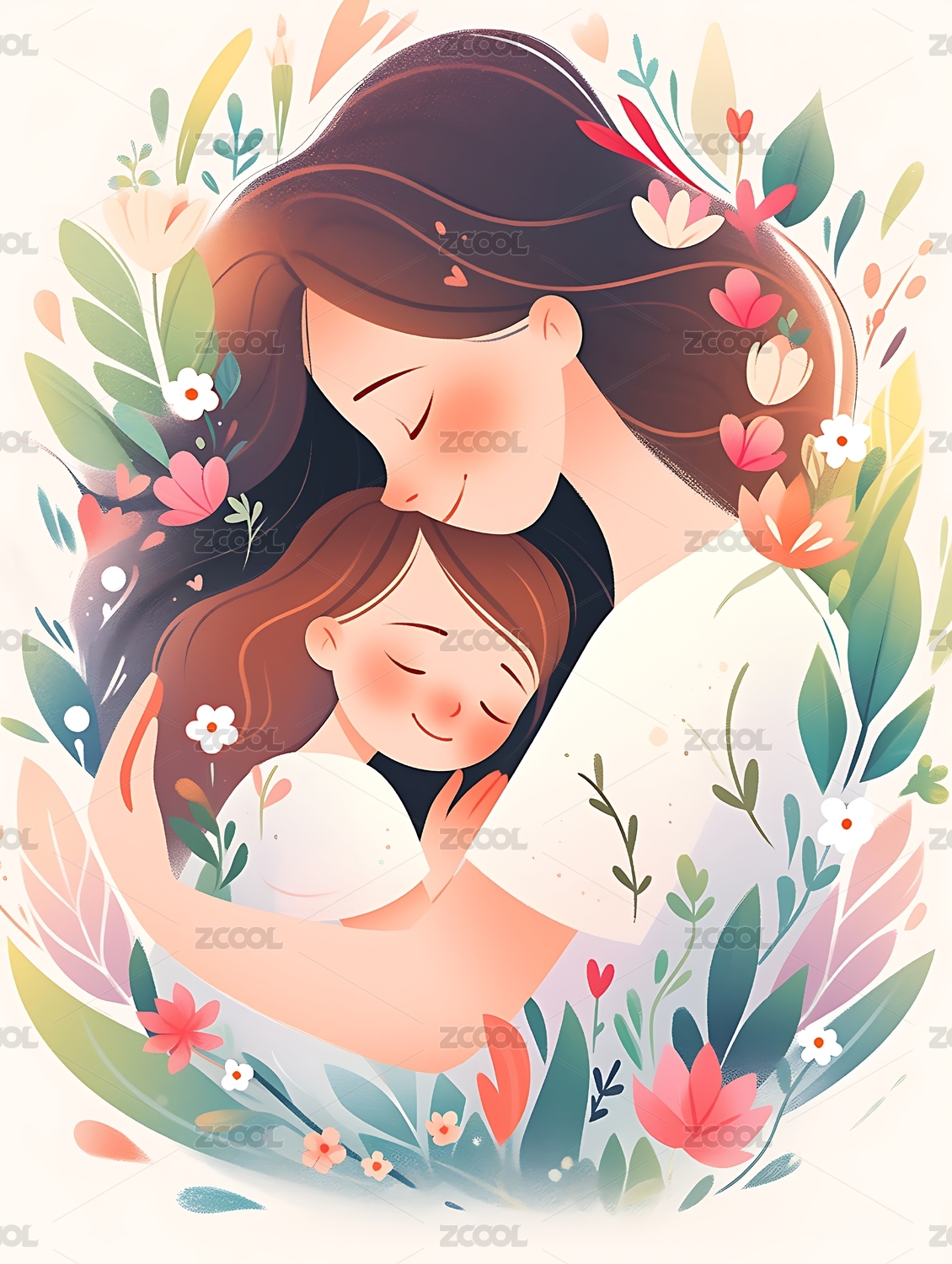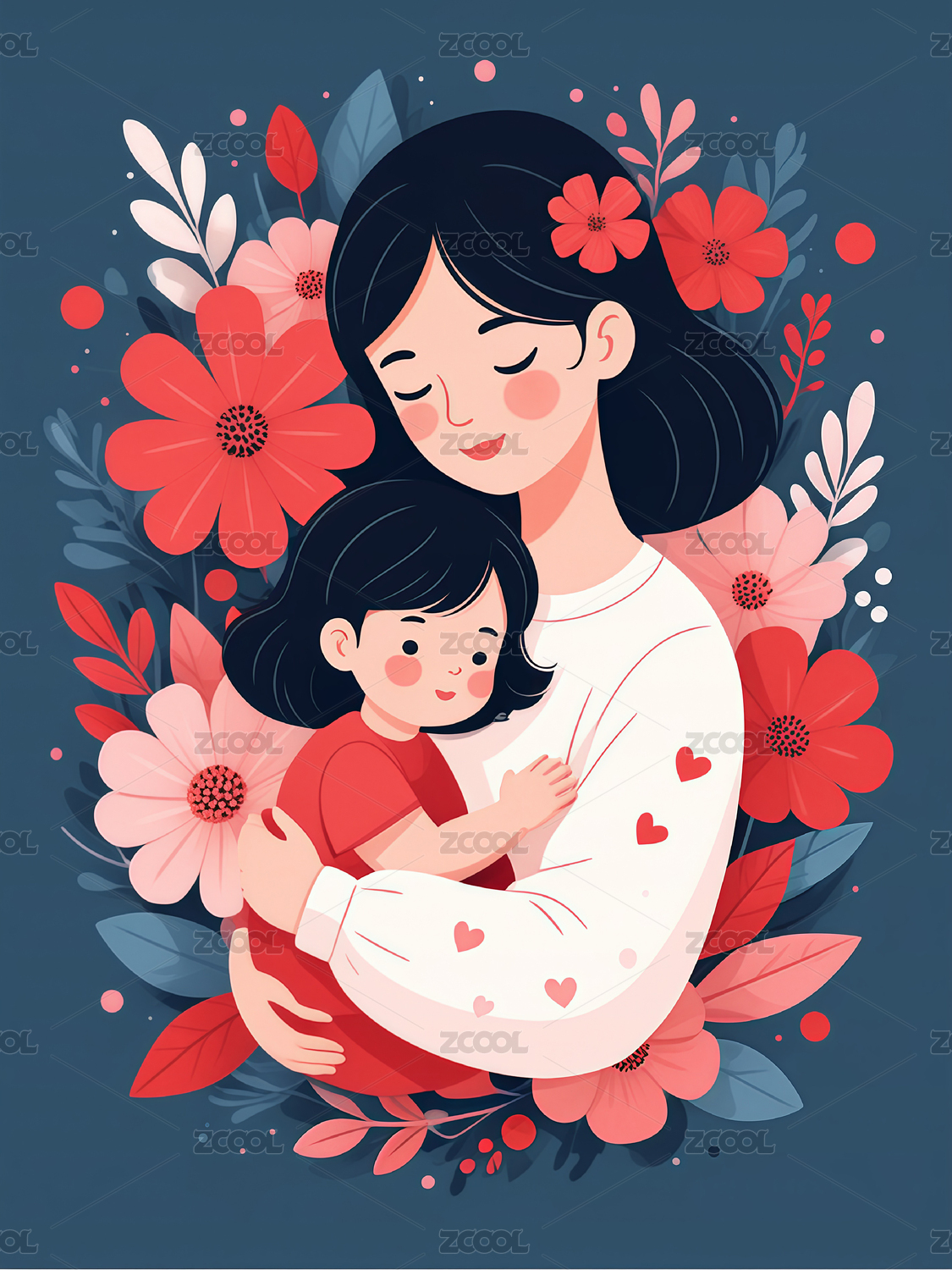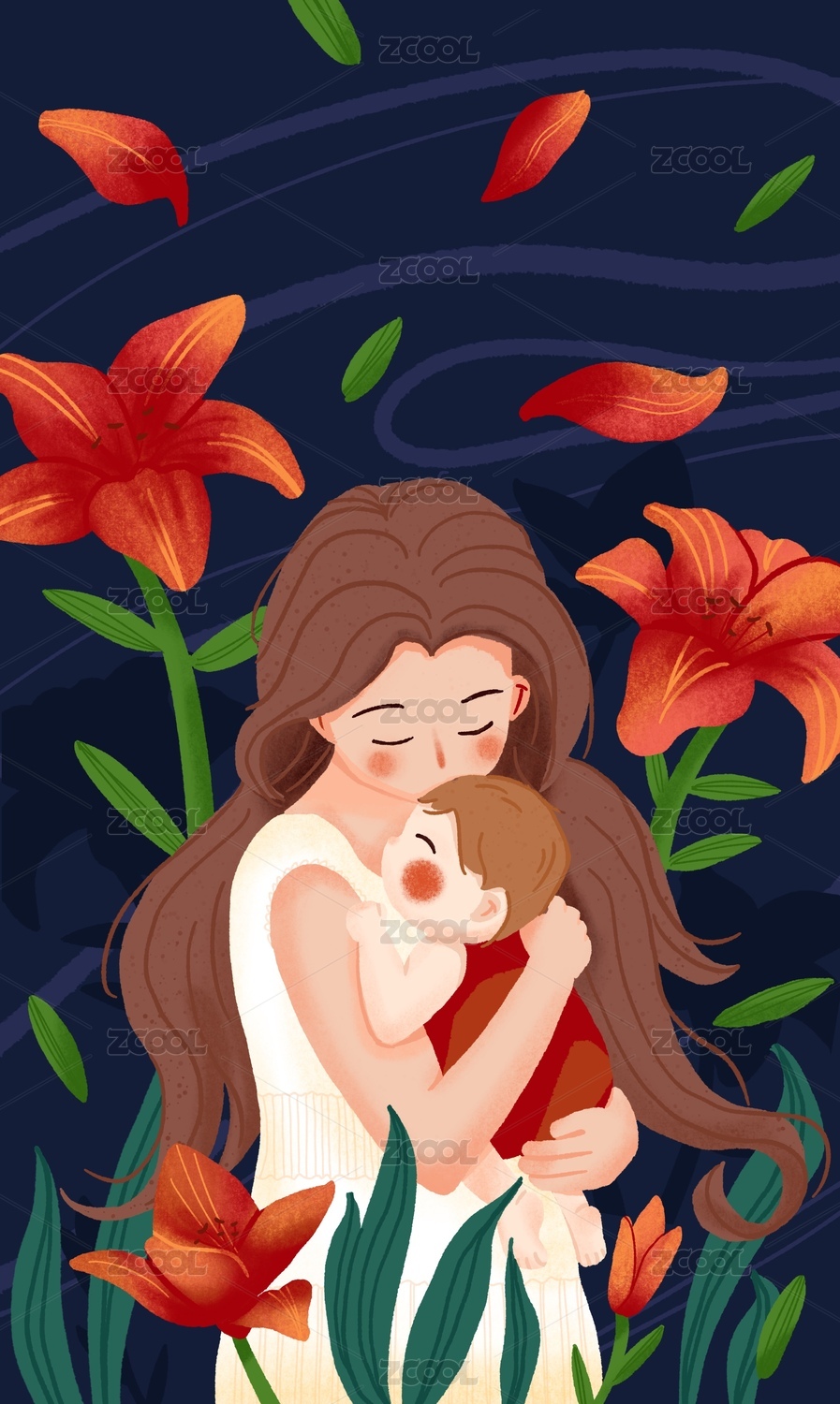母亲节,母亲,节日,植物,人物,人,花,爱,电商,插画