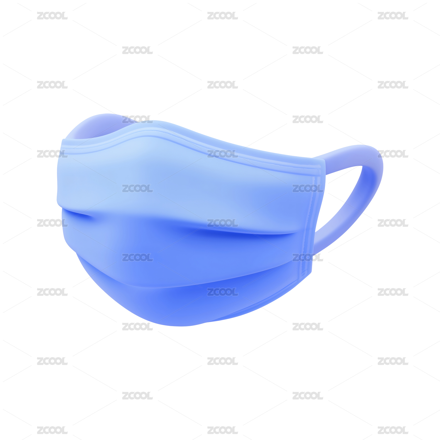 一个3D卡通粘土风材质的蓝色医疗口罩