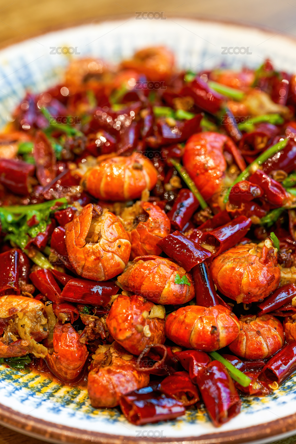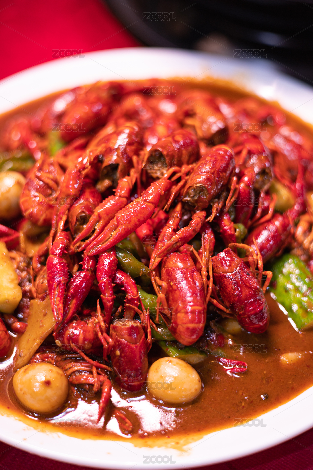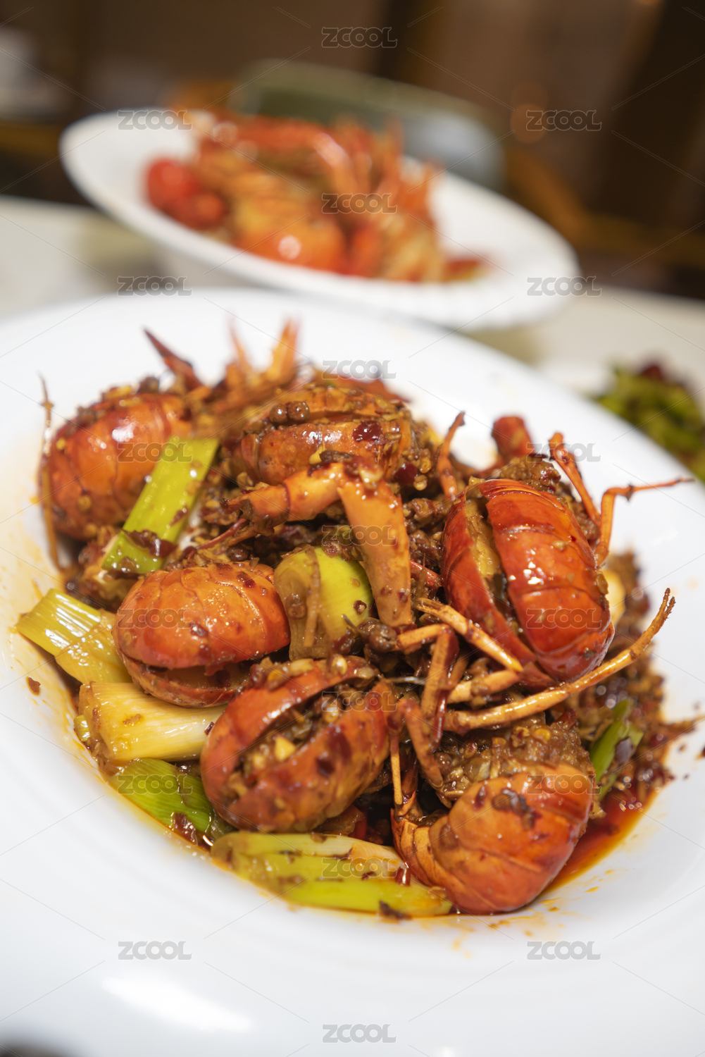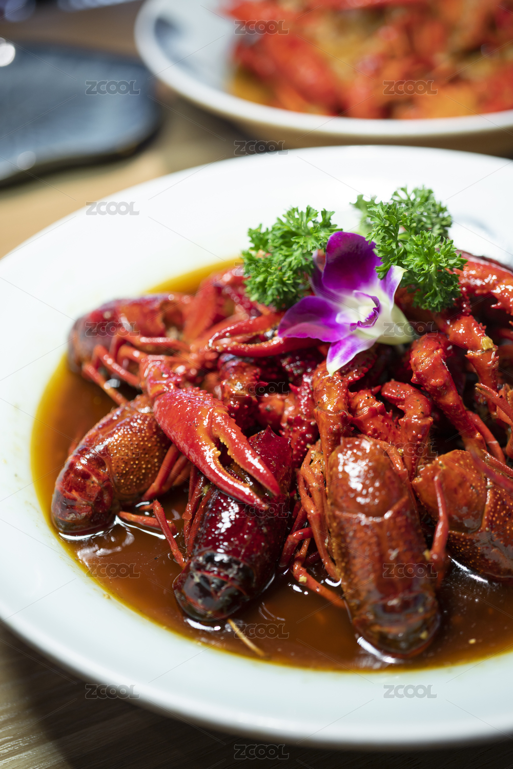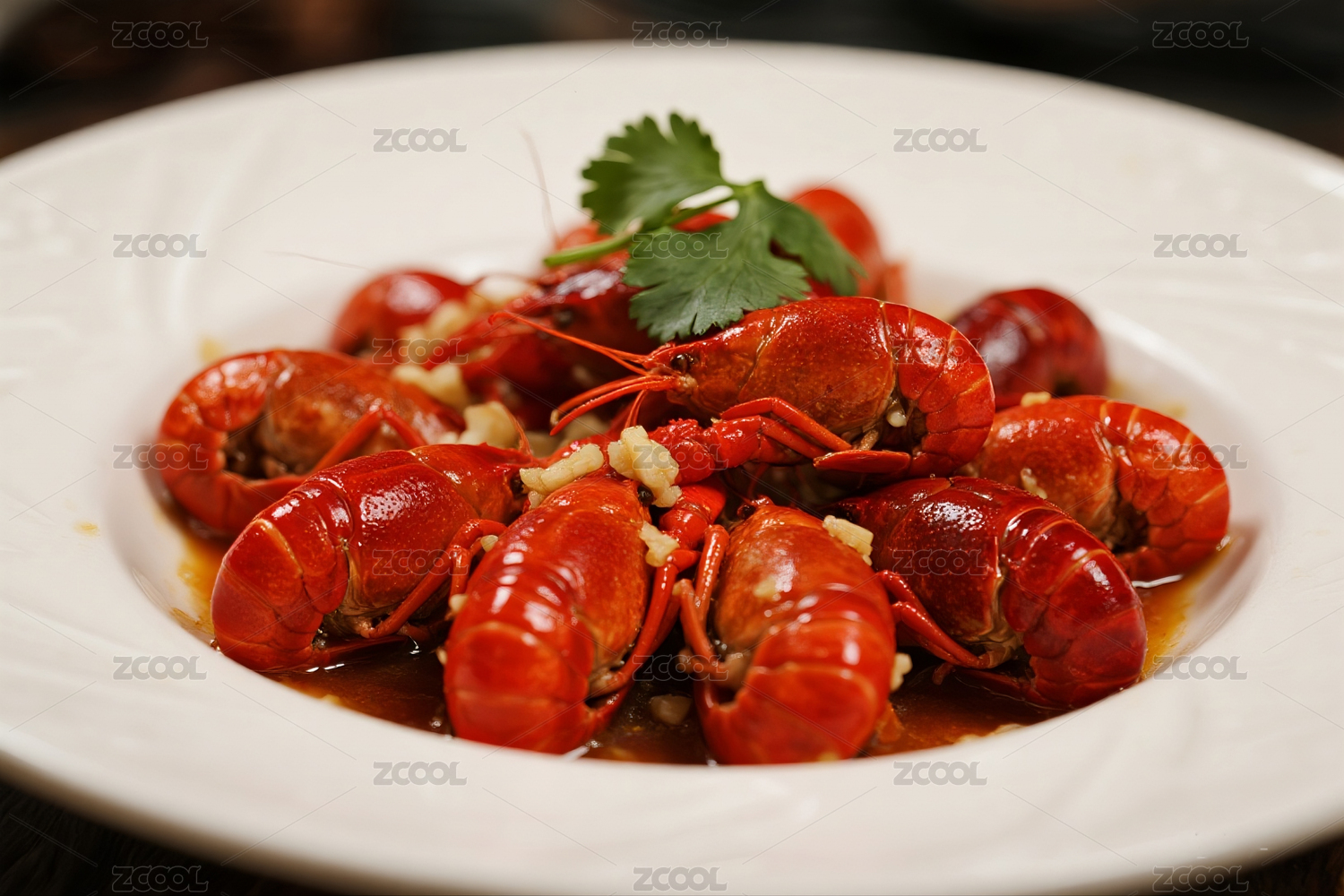 爆炒小龙虾摆盘特写展示
