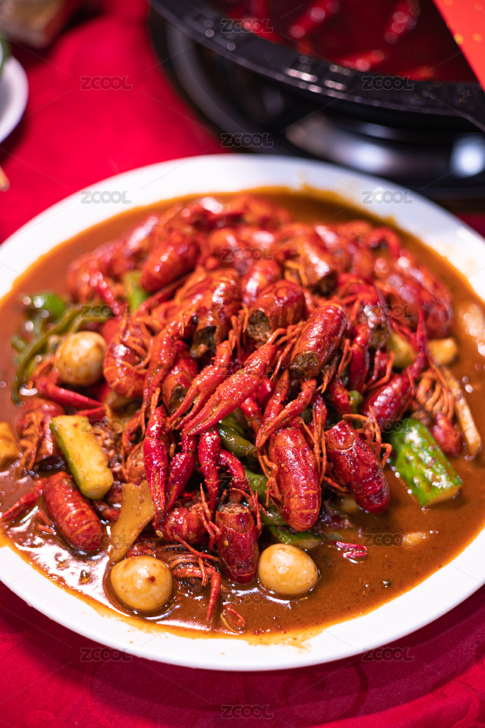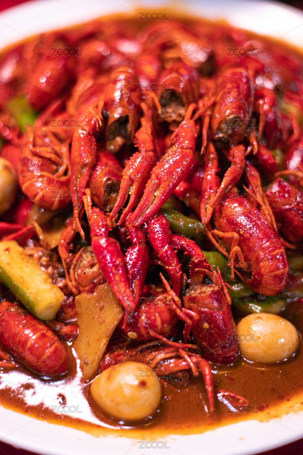 卤煮小龙虾摆盘特写展示