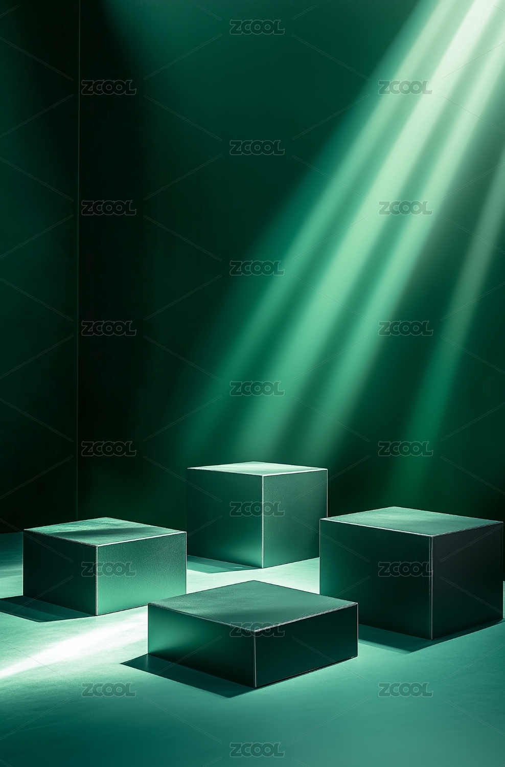 绿色光束下的立方体展示台