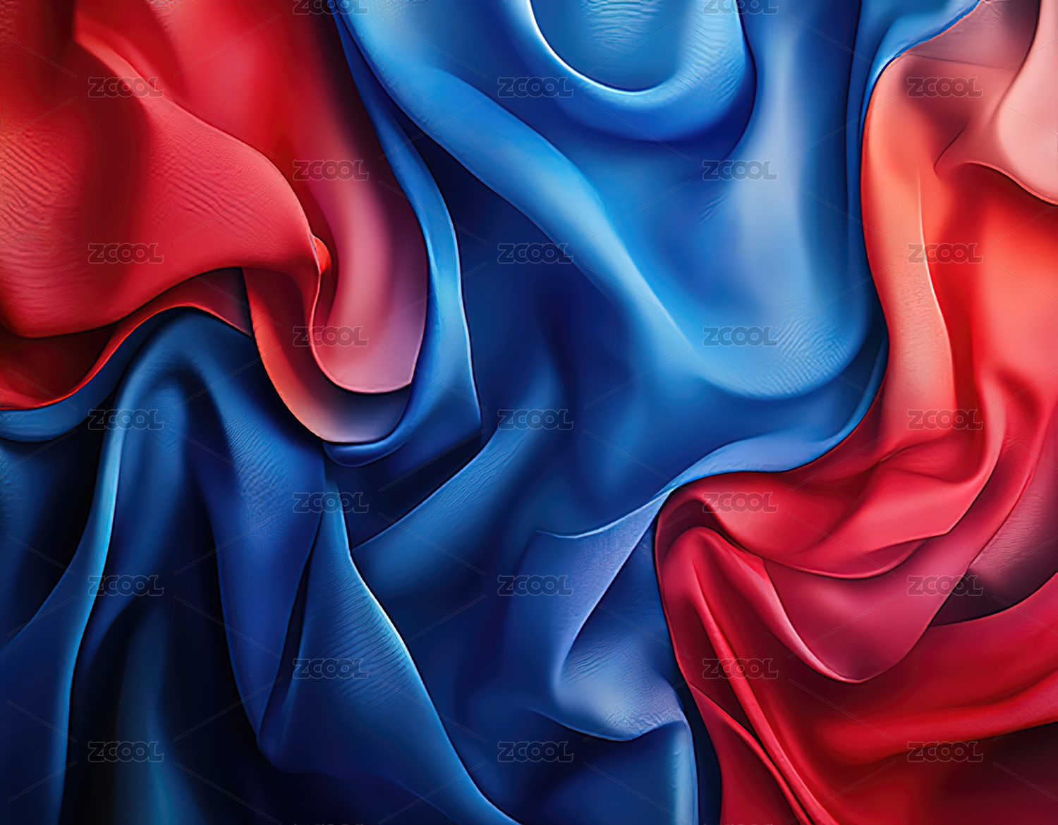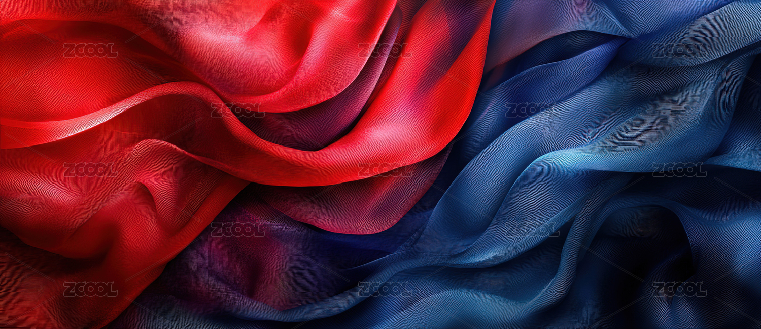 蓝红交织的丝质布料