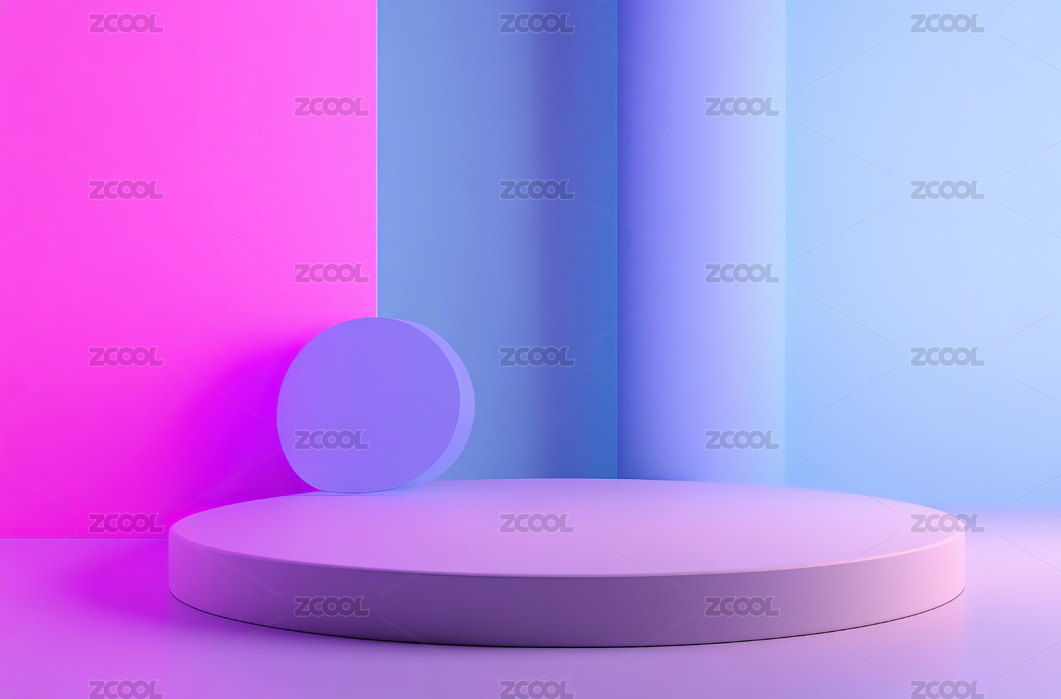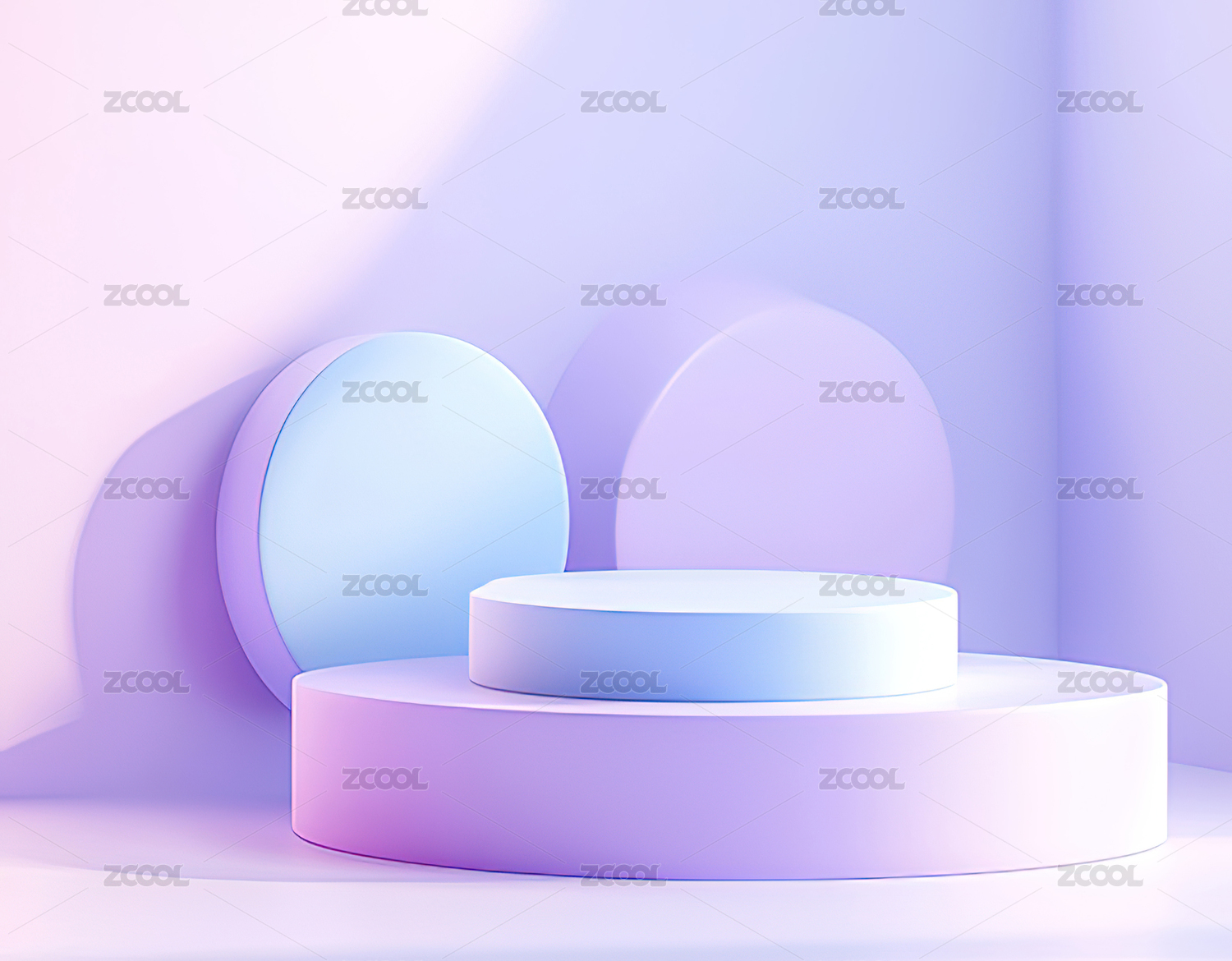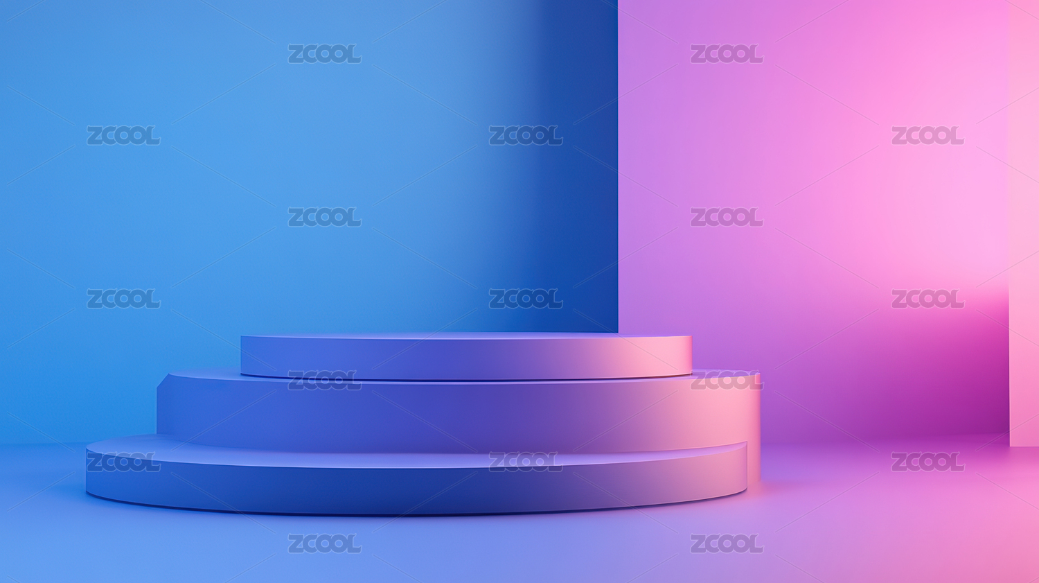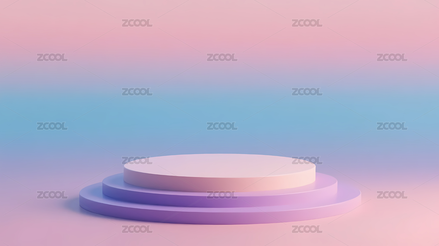 梦幻粉蓝渐变色展台底座电商3D效果图