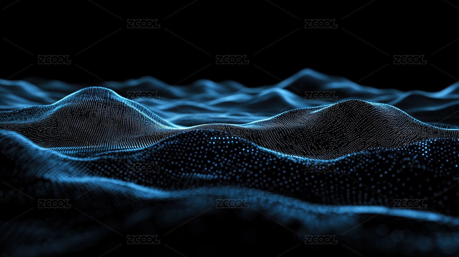 蓝色波浪数据粒子抽象背景图
