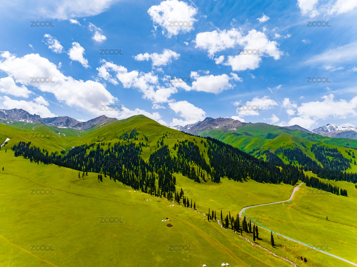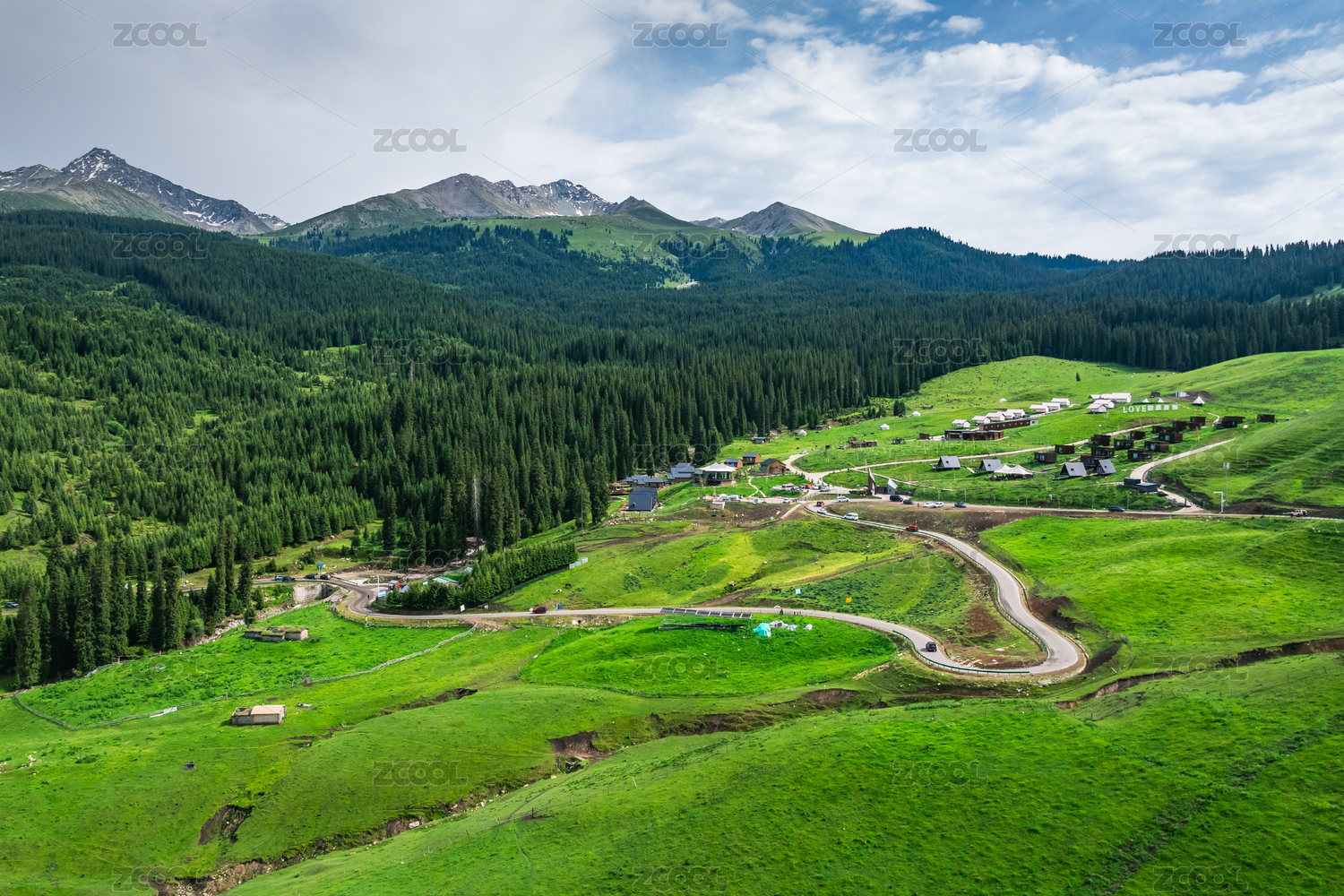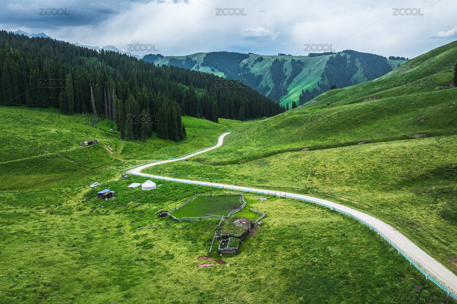 中国新疆伊犁恰西草原塔里木森林公路风光