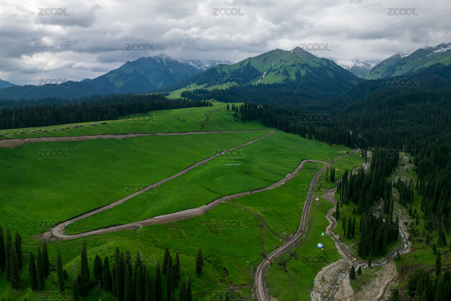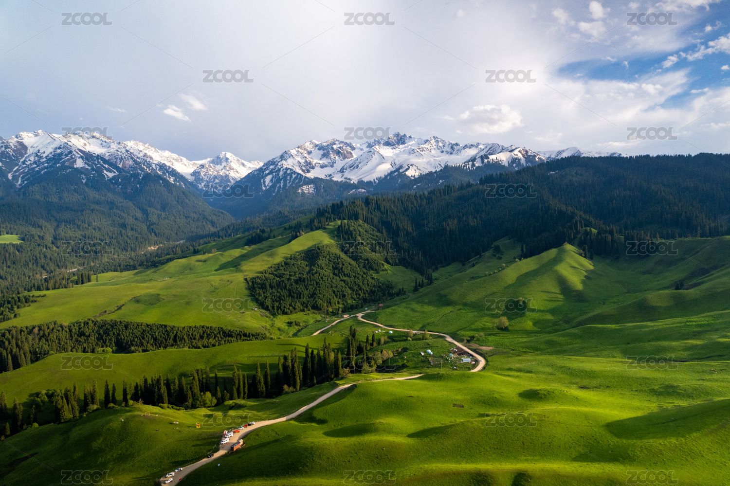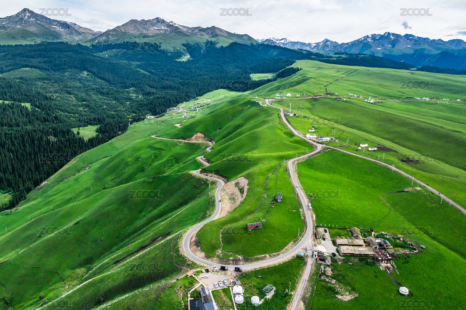 中国新疆伊犁恰西草原塔里木森林公路风光