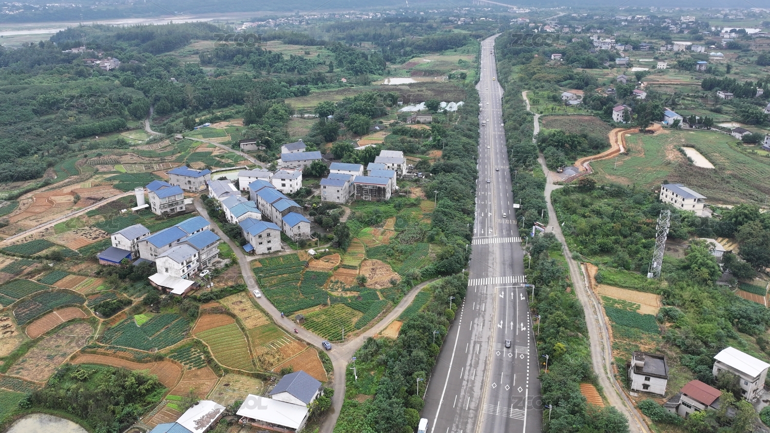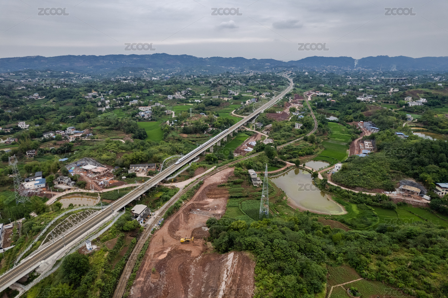 四川宜宾象鼻乡村蜿蜒田野内昆铁路与奔驰火