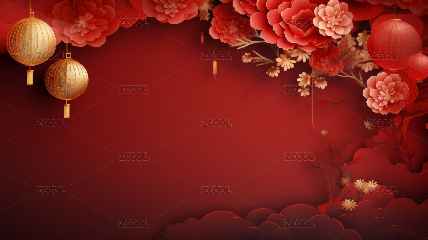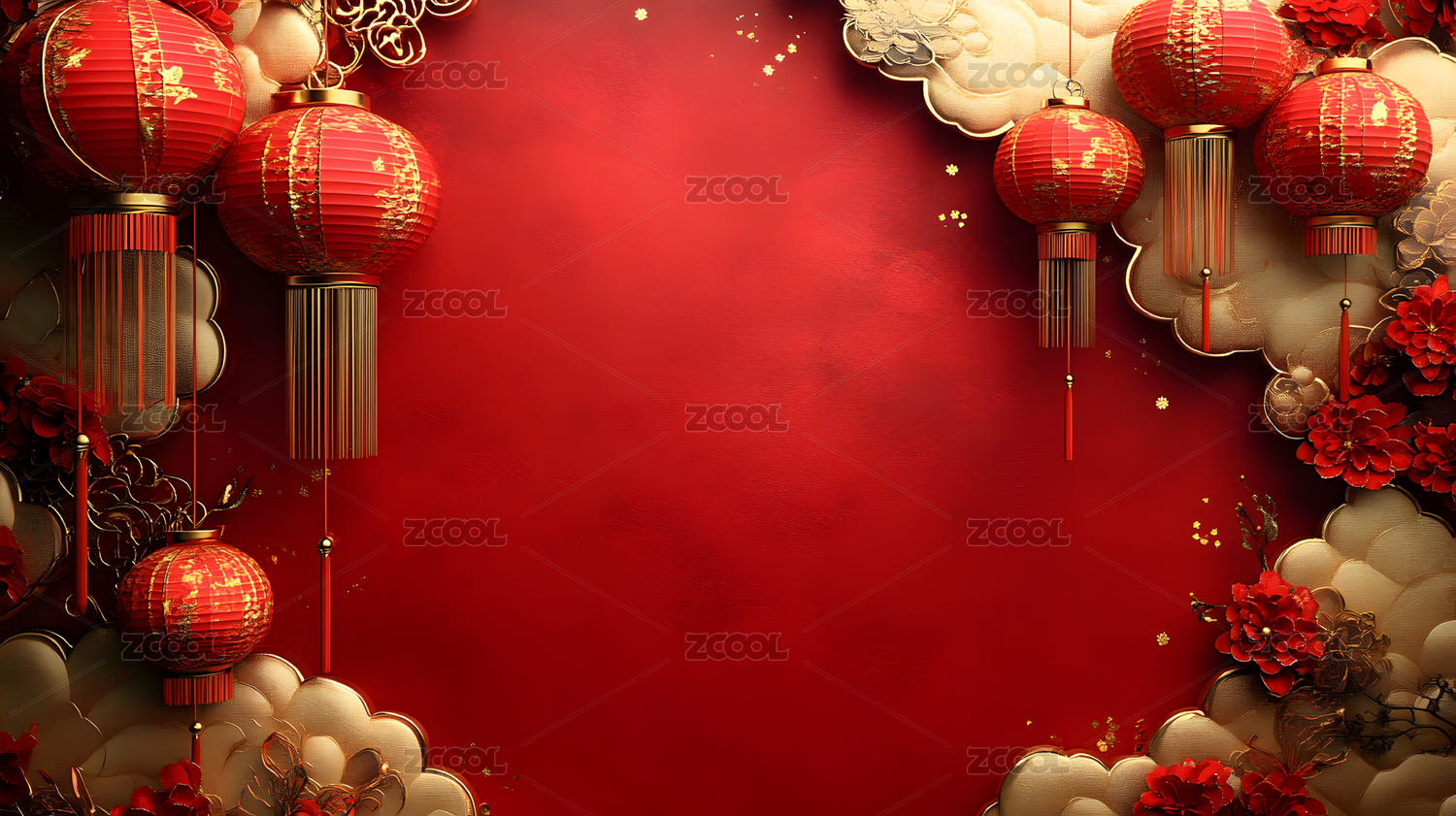 中国风,新年,春节,喜庆,红色,灯笼,花卉,背景,素材,装饰