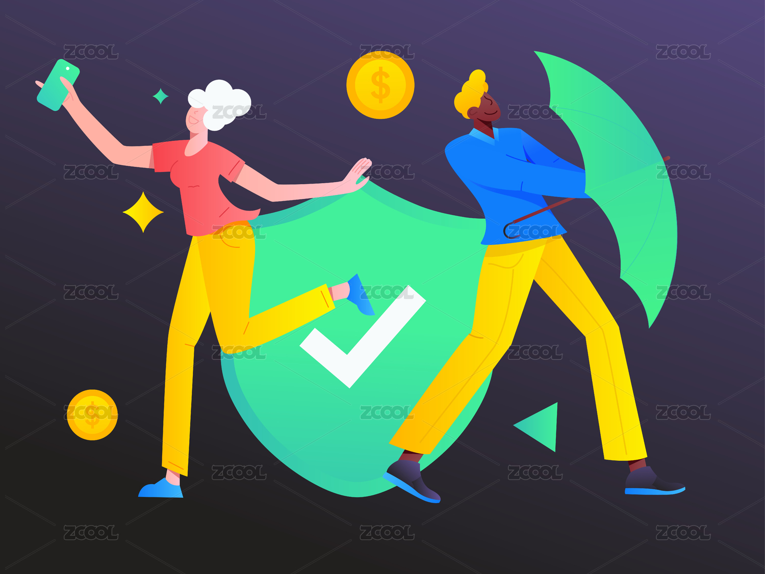 保护用户资产安全, 矢量扁平人物场景创意概念插画