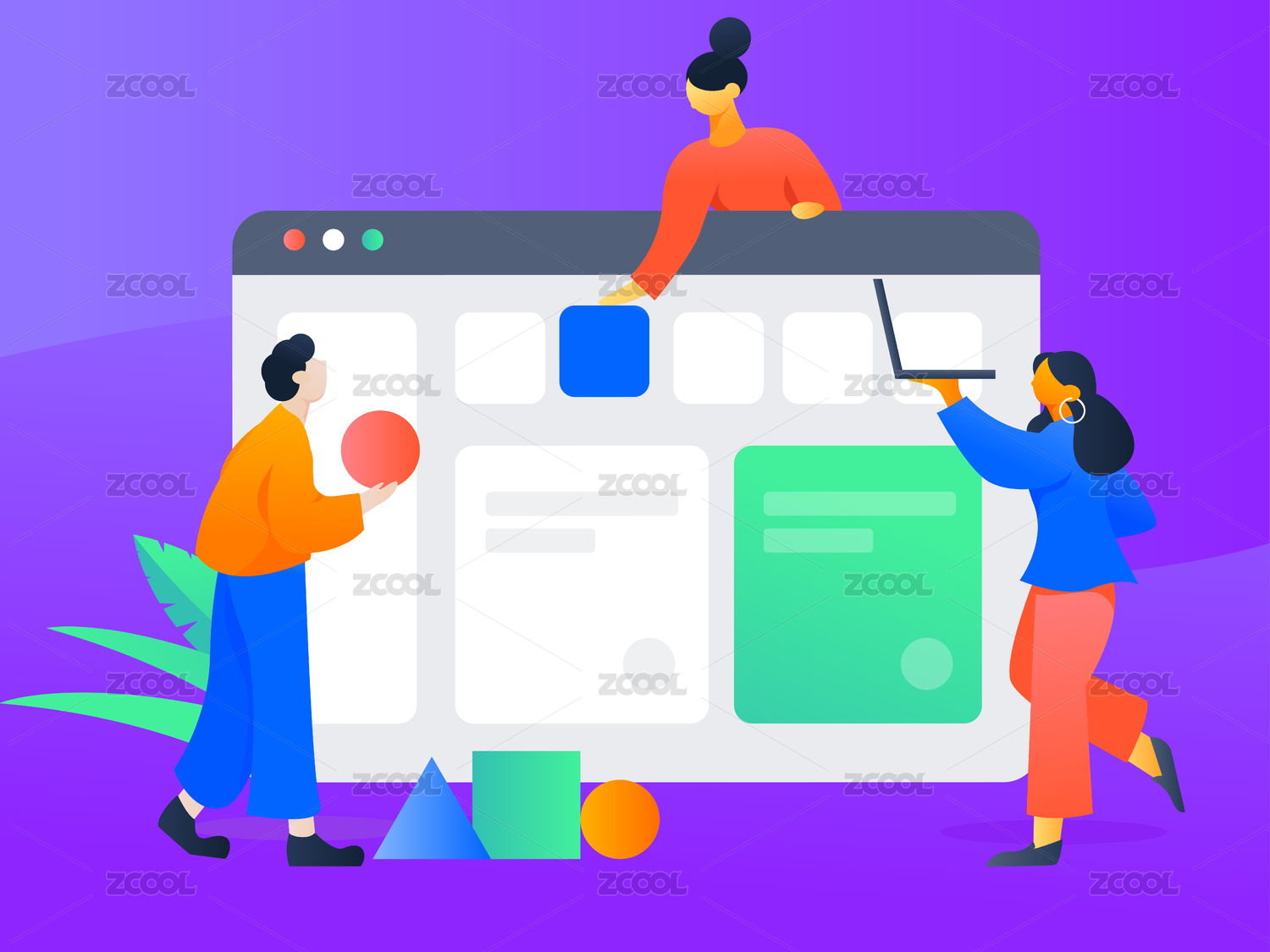 协作的人物, 矢量扁平人物场景创意概念插