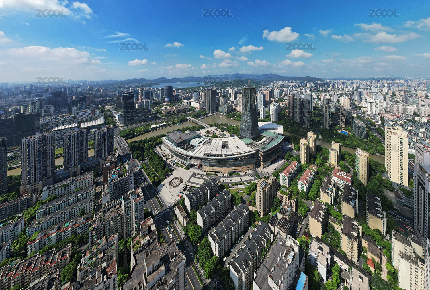 江门蓬江区万达广场建筑蓝天航拍拍摄