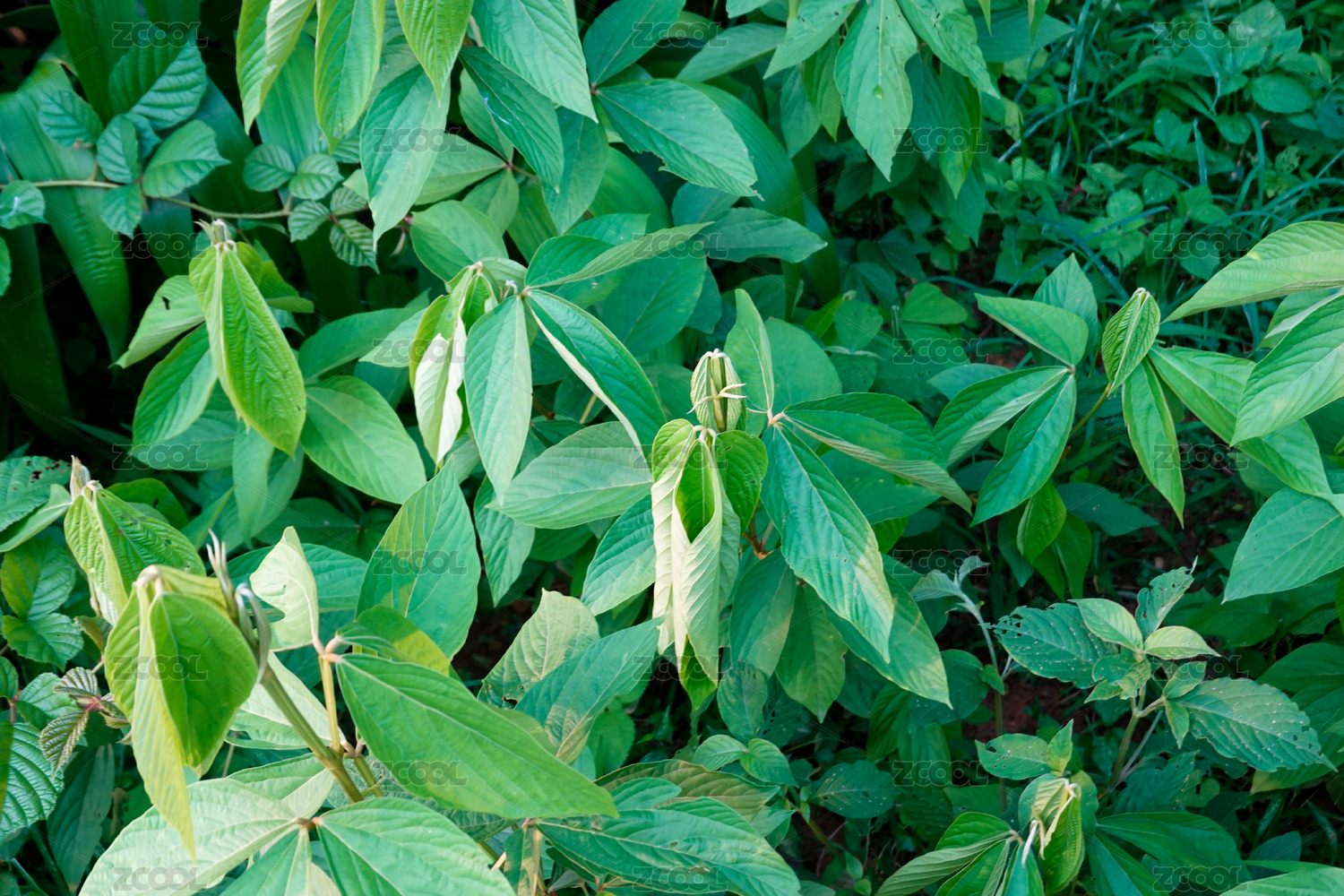 夏天中药种植园生长的大叶千金拔