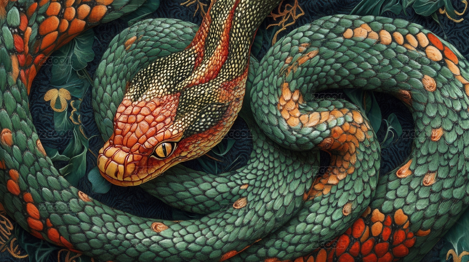 繁花灵蛇图