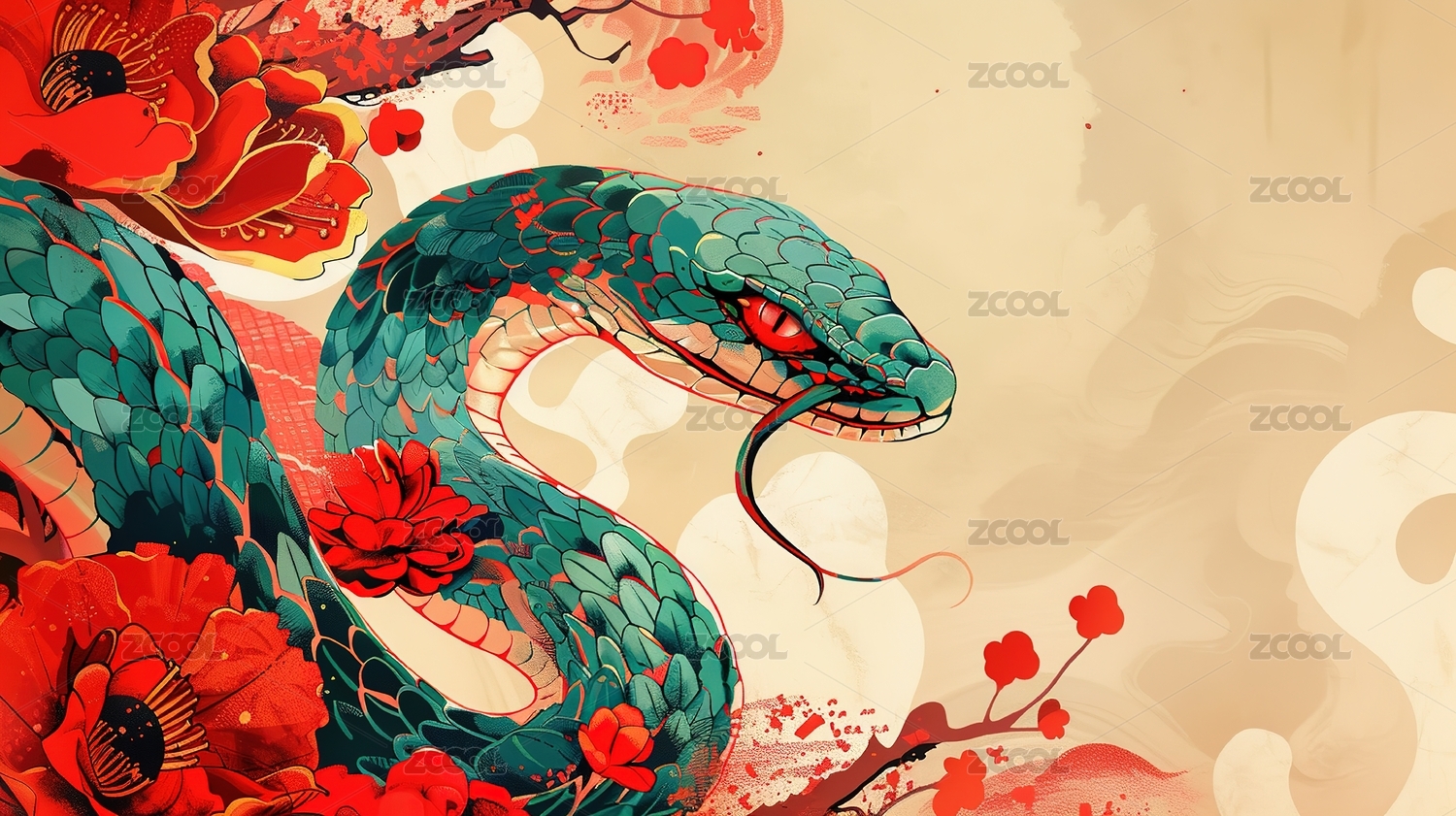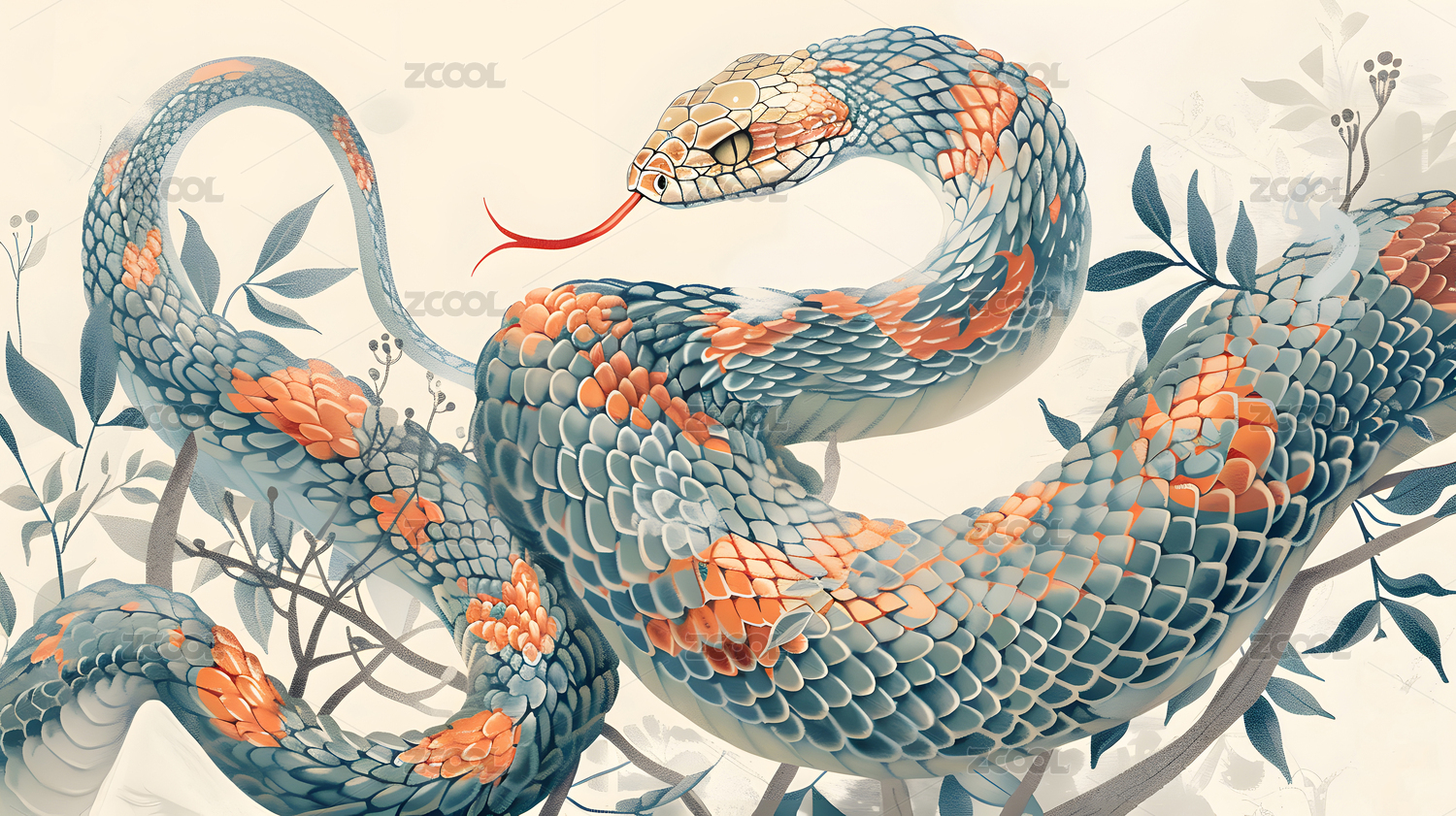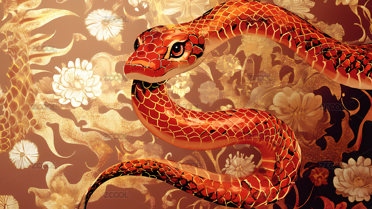 生肖蛇插图艺术壁纸背景