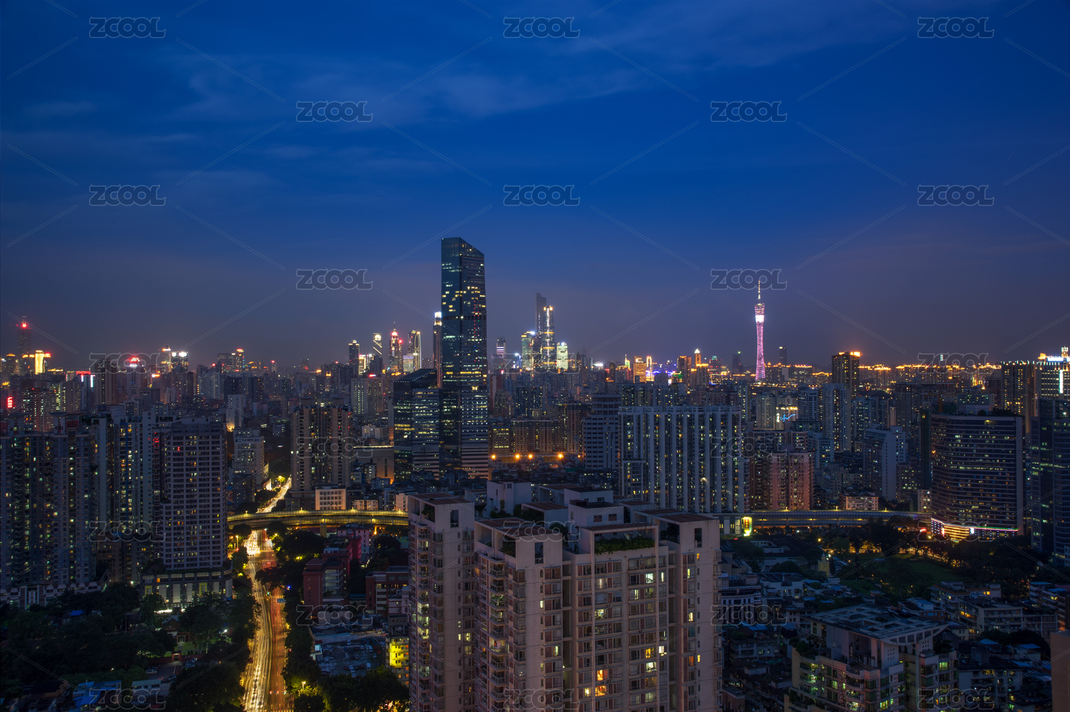 广州城市中心天际线繁华夜景