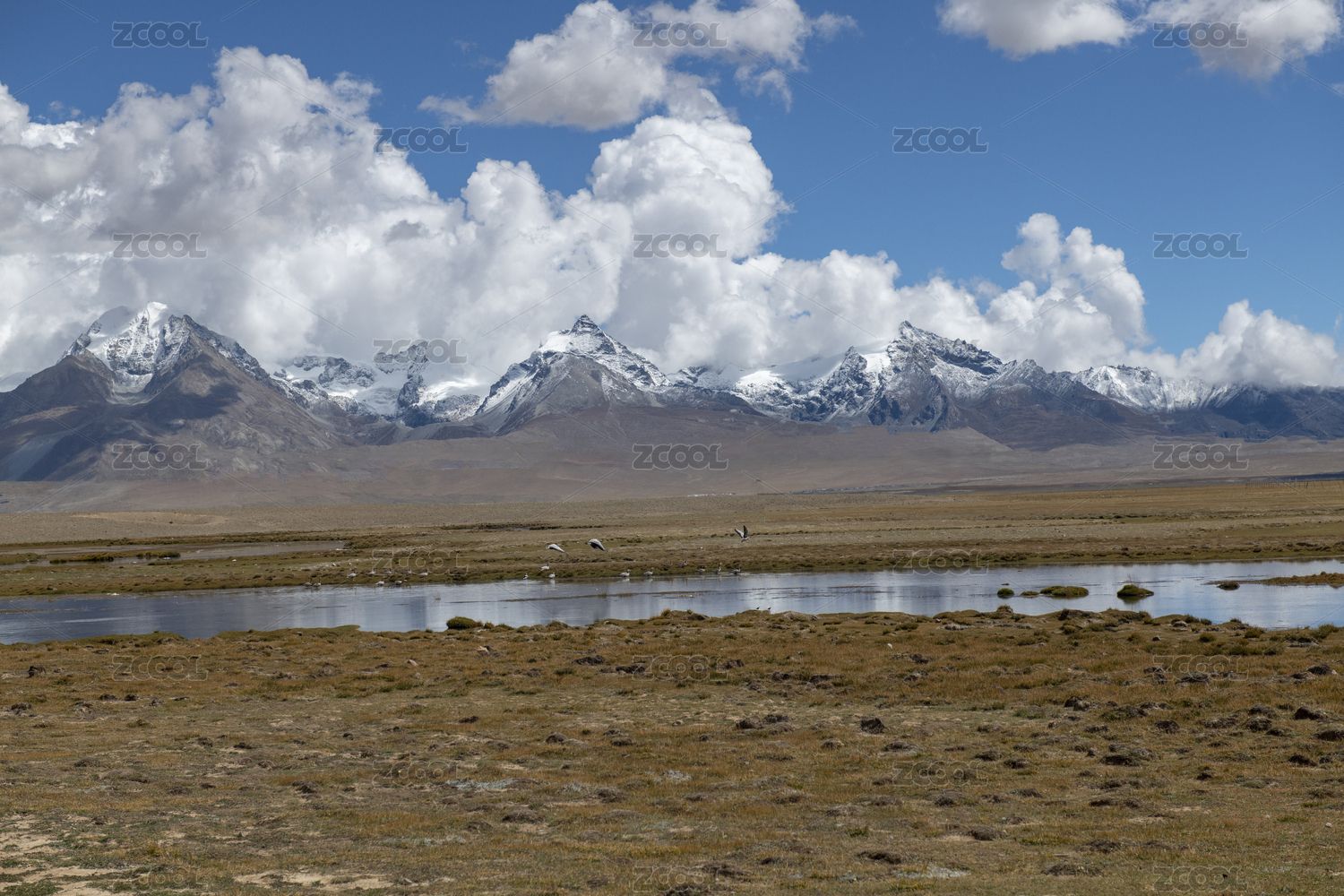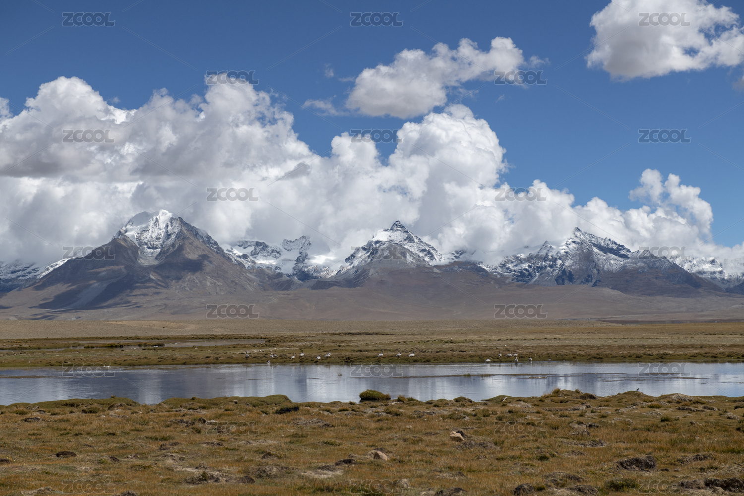 西藏萨嘎县到霍尔乡219国道的雪山湿地牧