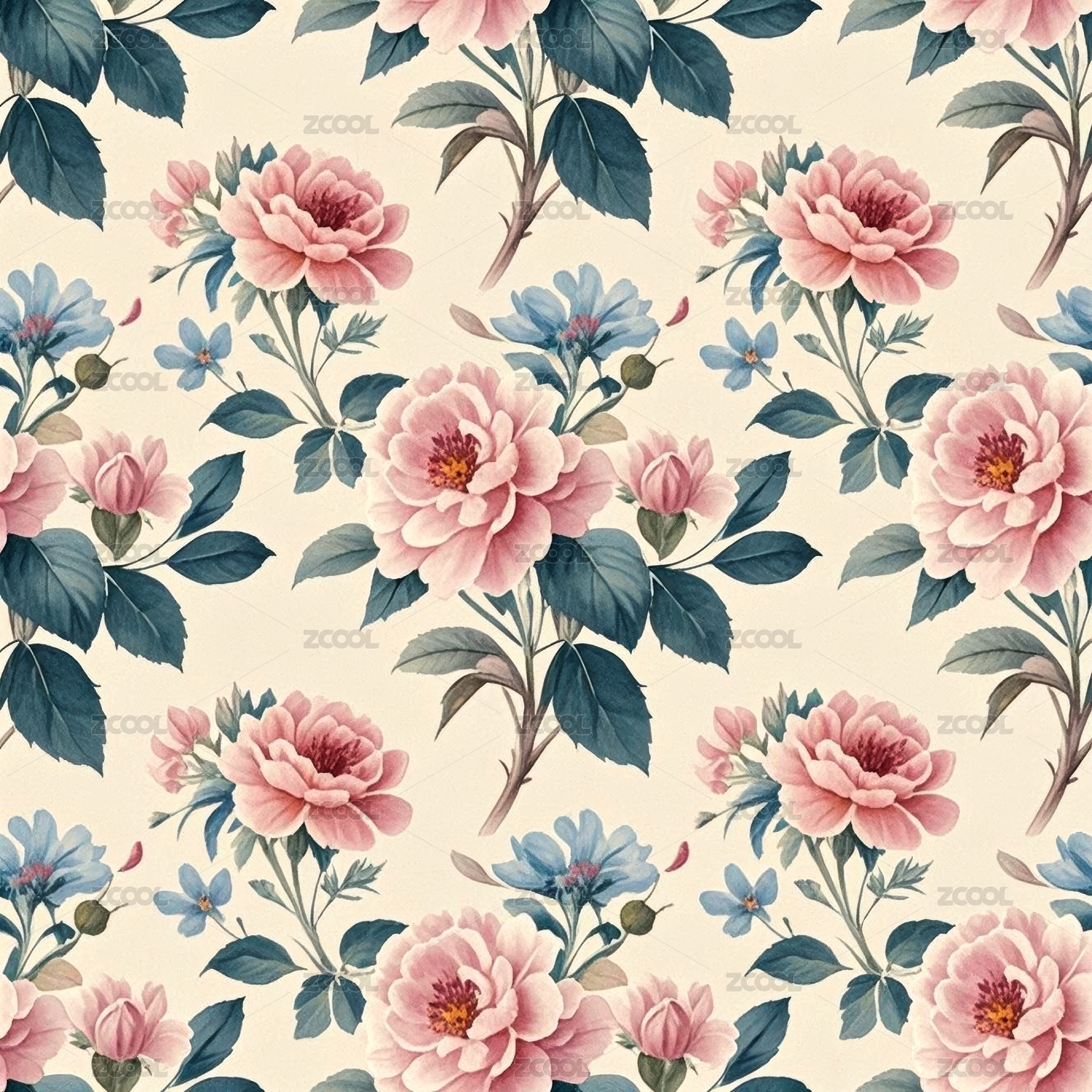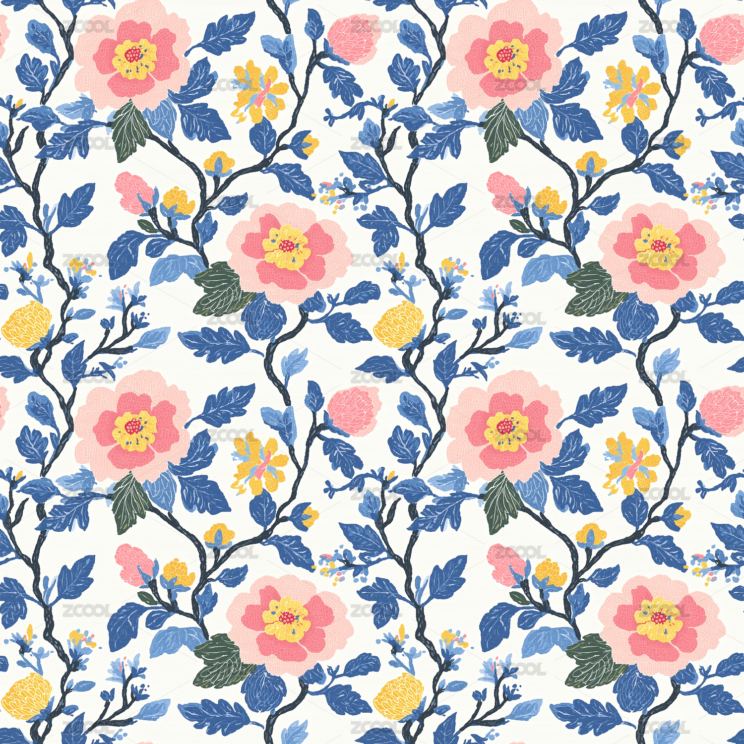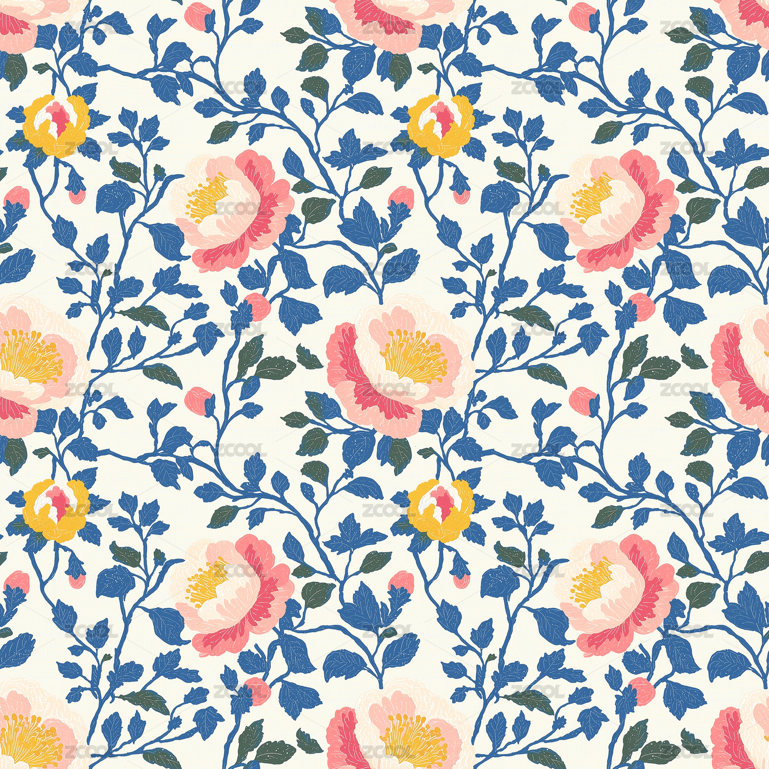 图案纹样-四方连续-简约扁平花卉水果叶子