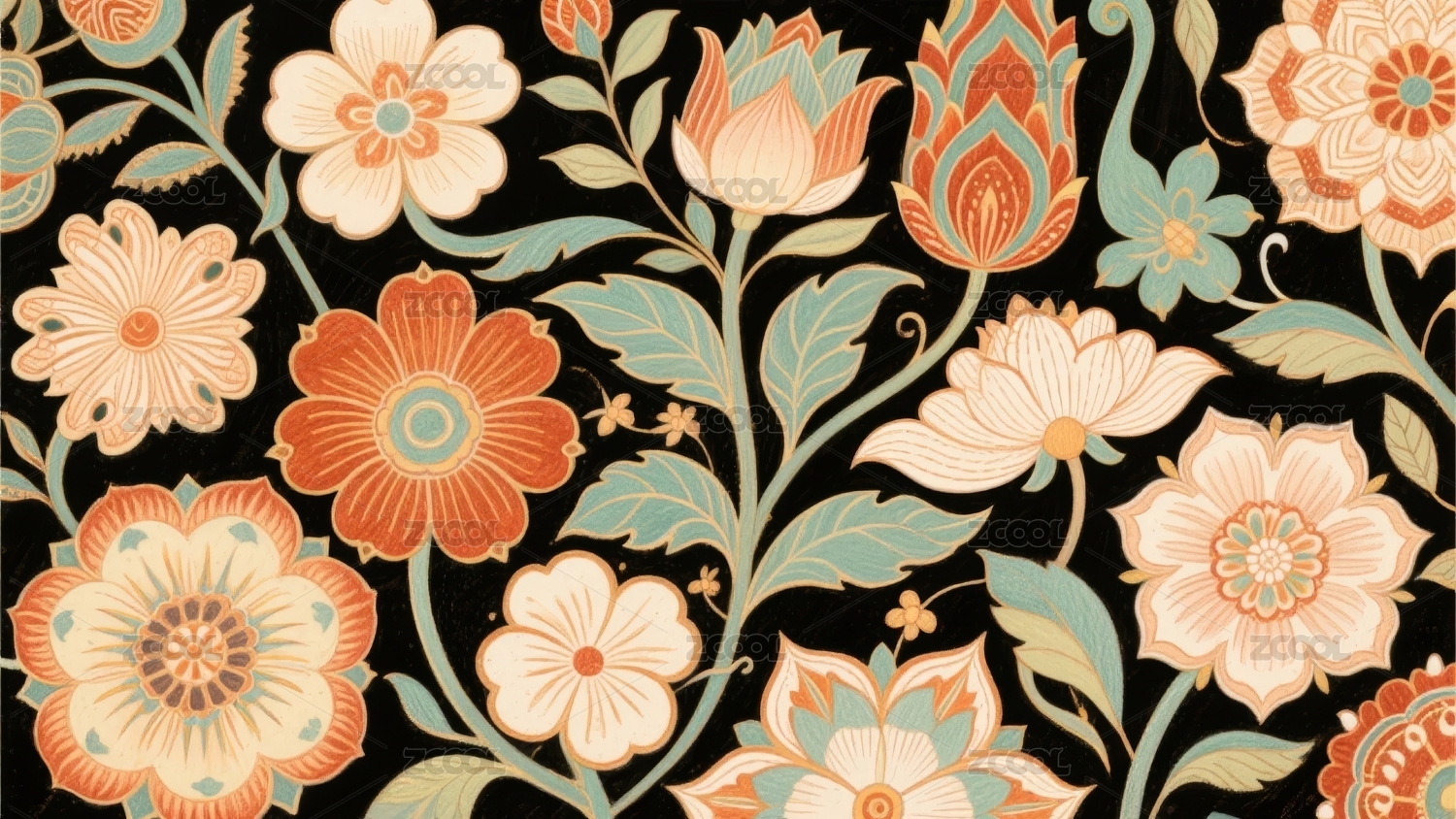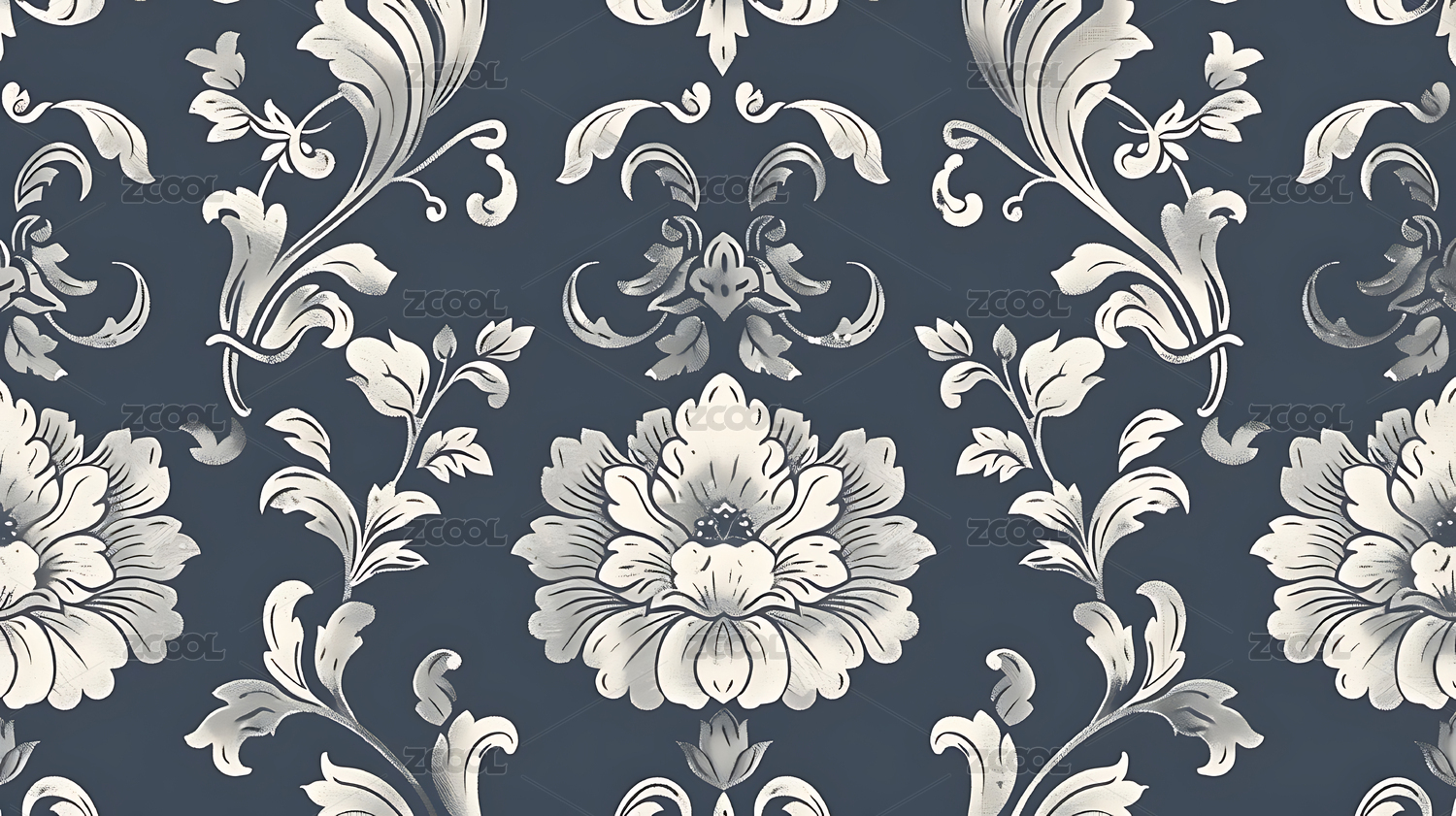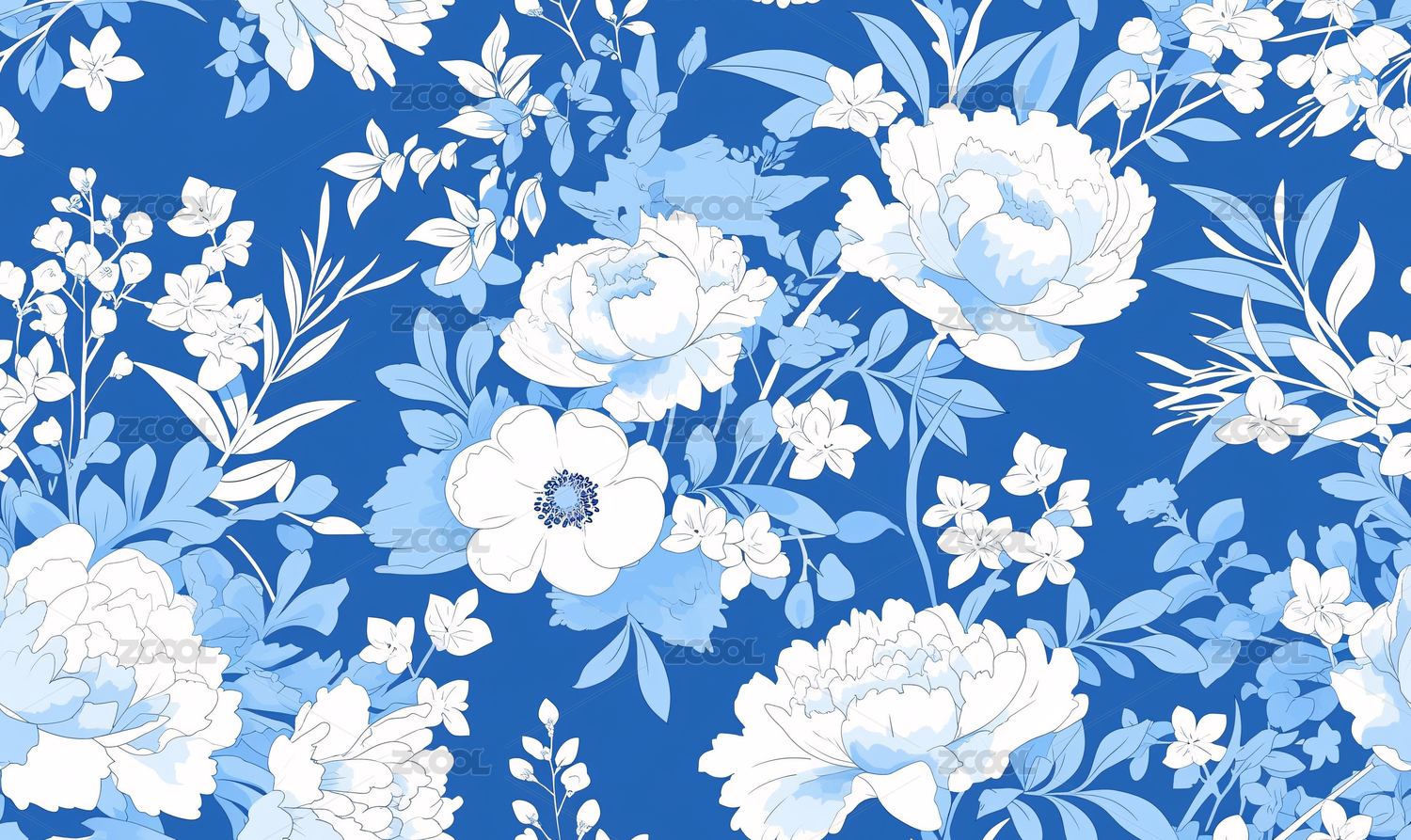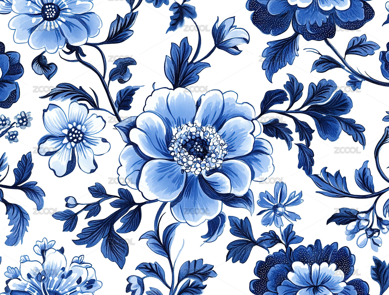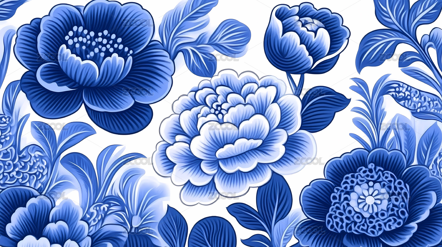 蓝白陶瓷风格花朵植物图案插画海报背景