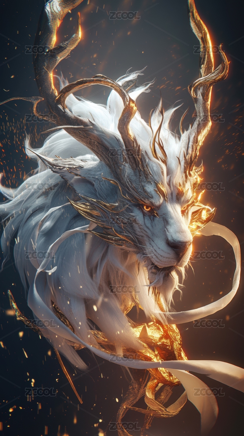 神秘生物火焰与闪电交织的奇幻兽