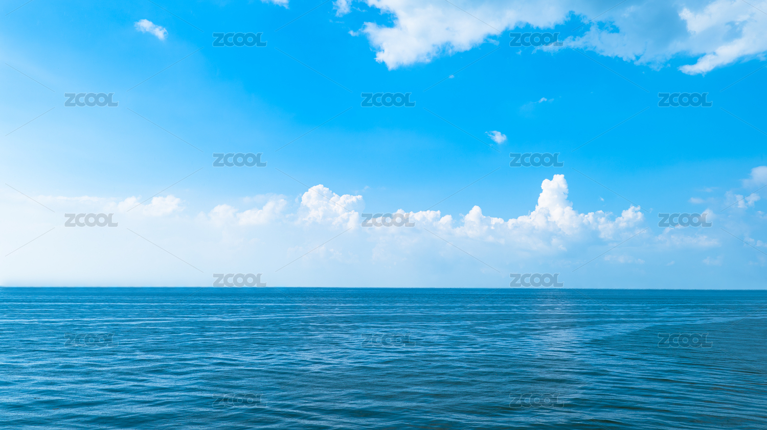 蓝色海平面和蓝天白云交相辉映
