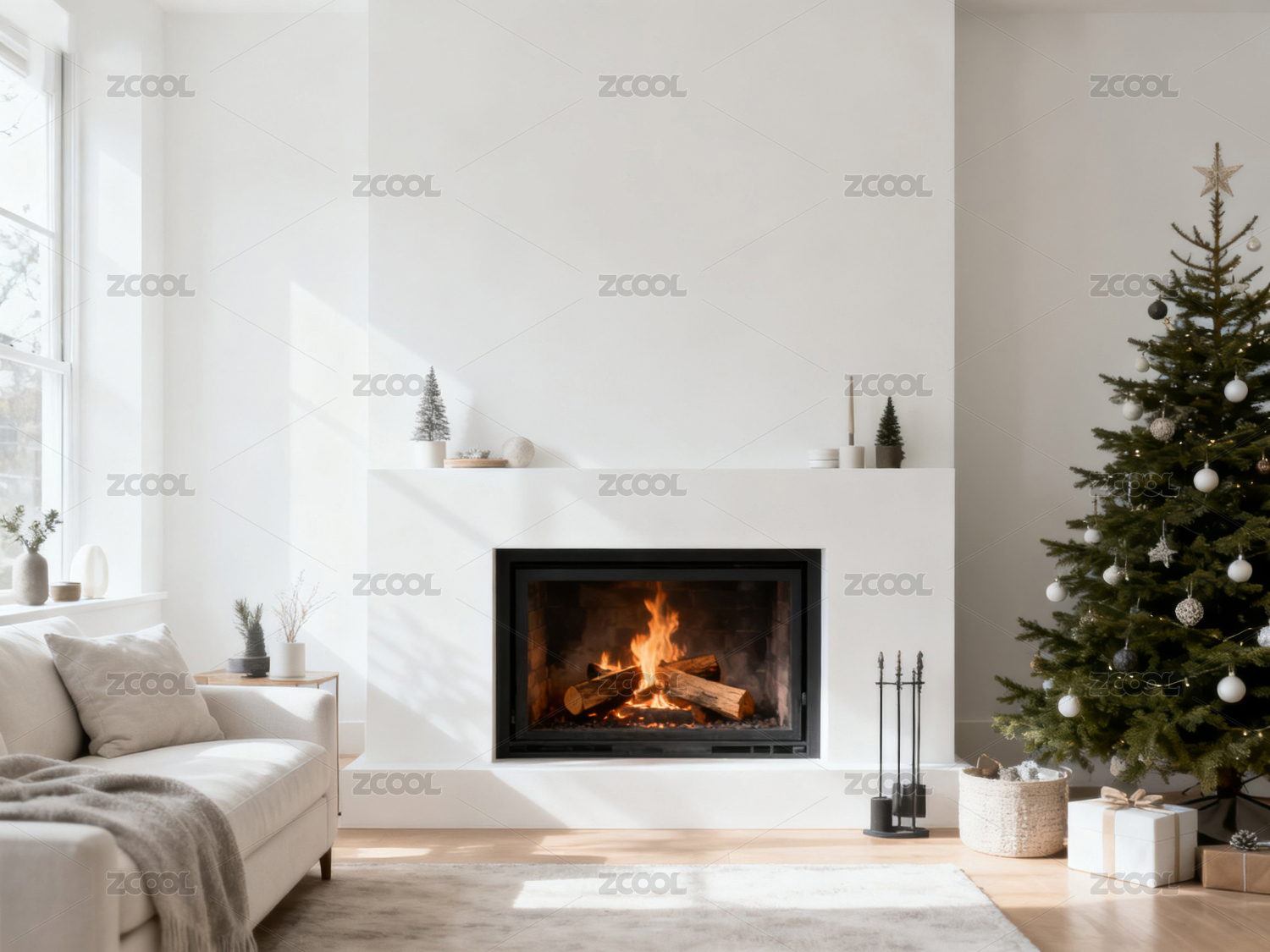 客厅,圣诞节,圣诞树,电视,沙发,茶几,装饰,灯饰,现代风格,室内设计