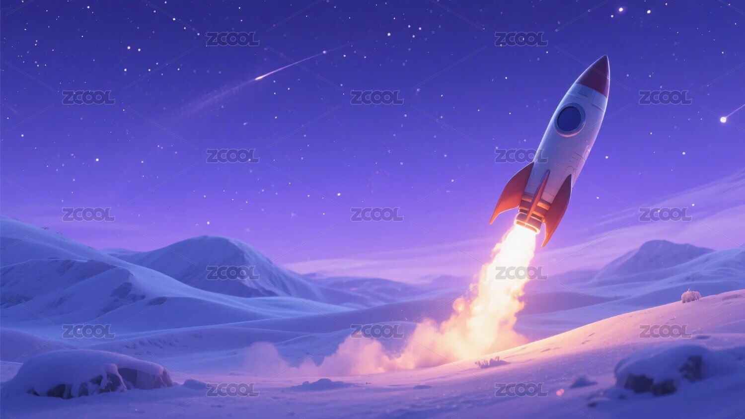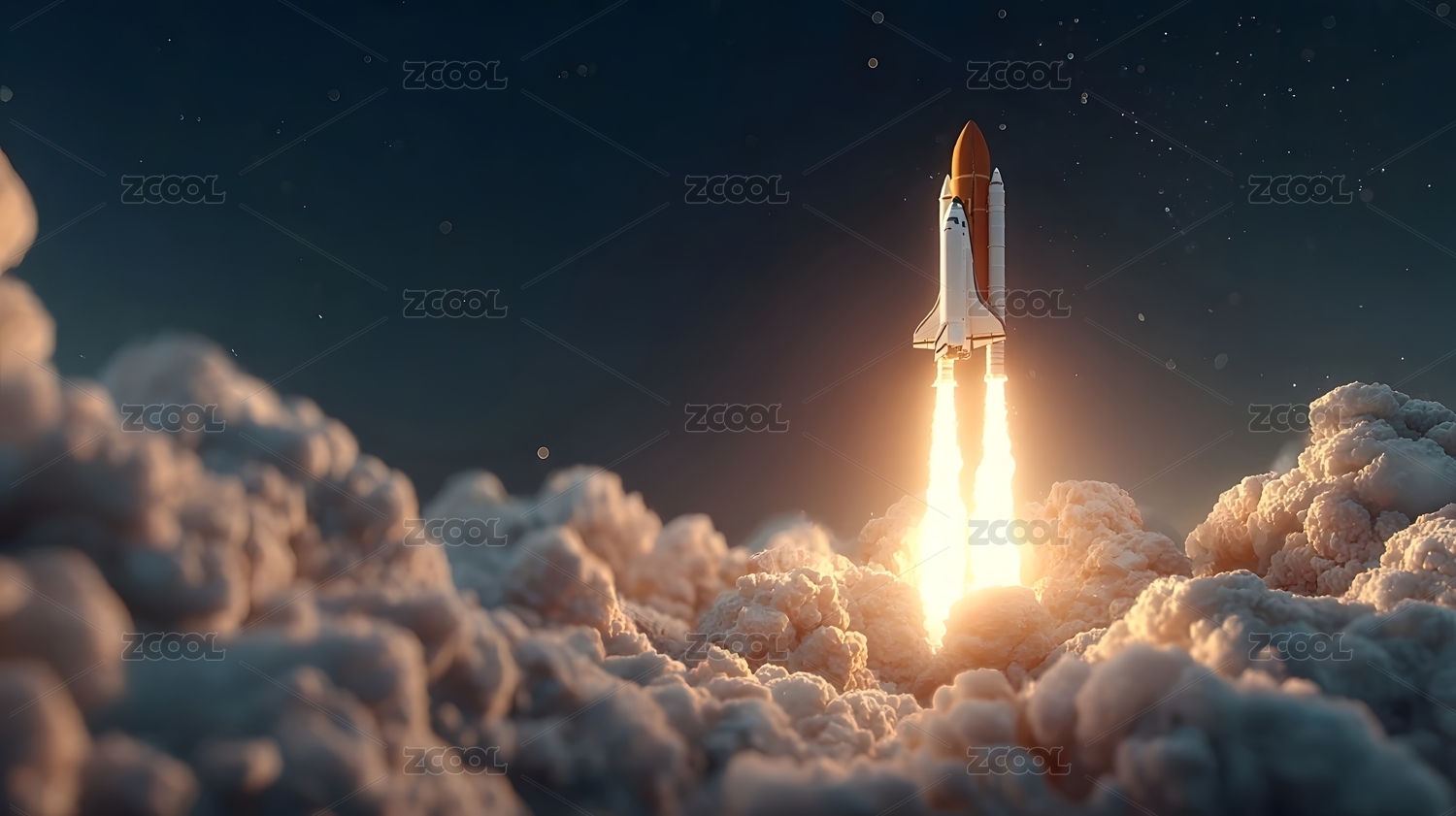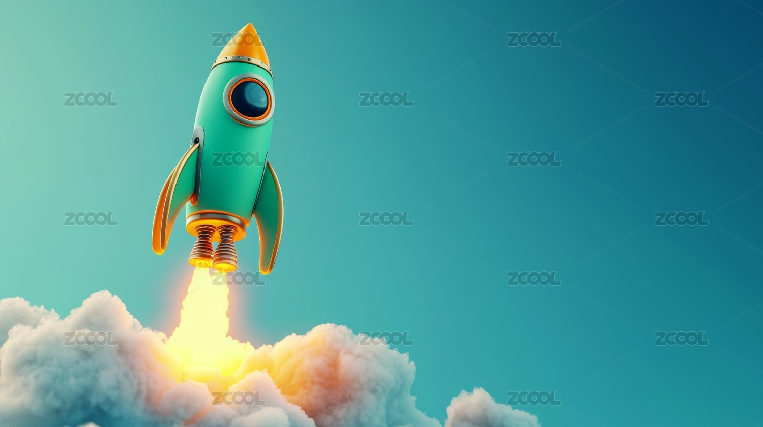 卡通火箭冲出云层 蒸汽喷射冲上云霄