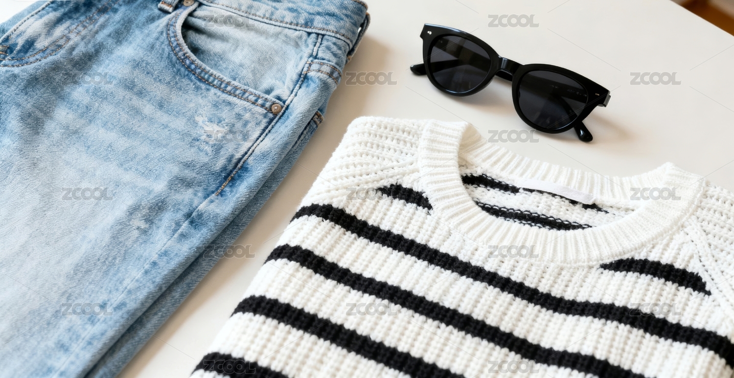 物品,服饰,鞋子,帽子,T恤,牛仔裤,墨镜,摆设,橱窗,特写