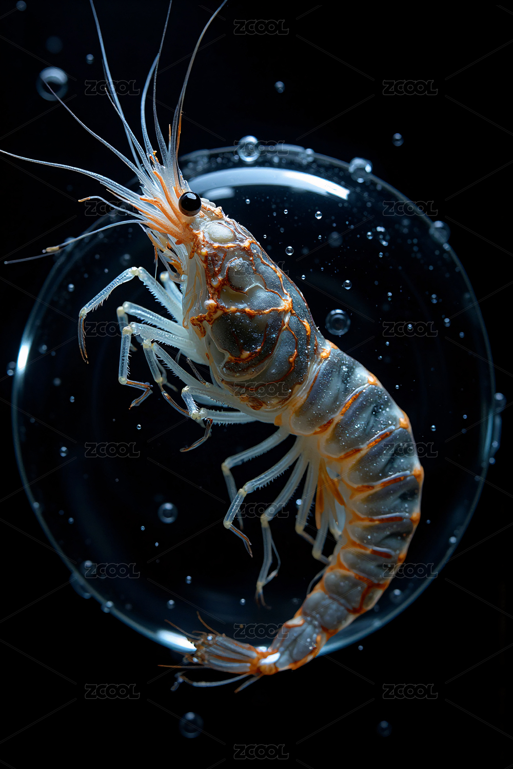 虾,水下,生物,透明,晶莹,海洋,水生动物,甲壳类,特写,微距