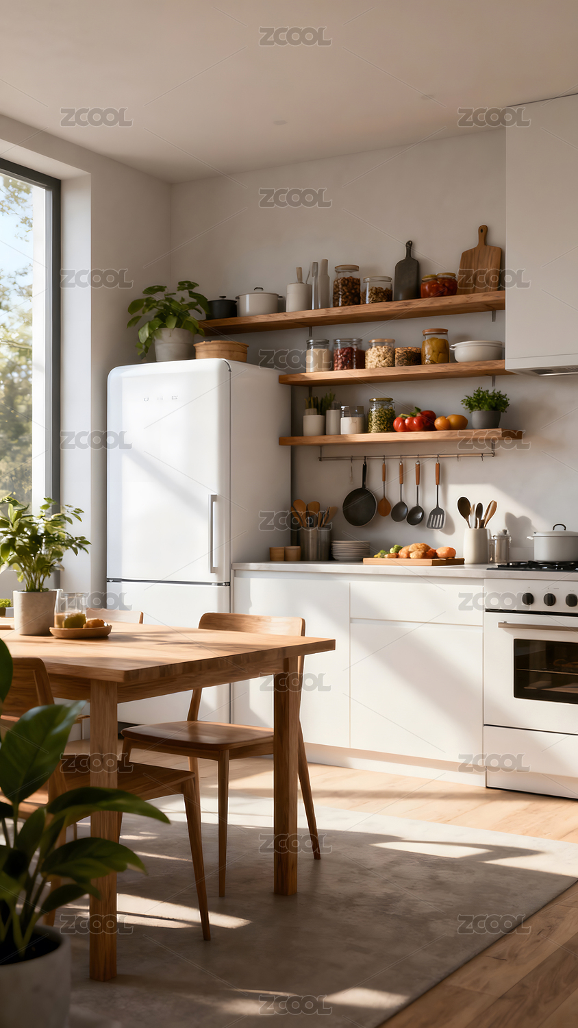 厨房,橱柜,灶台,烤箱,水槽,台面,灯光,窗户,阳光,早餐