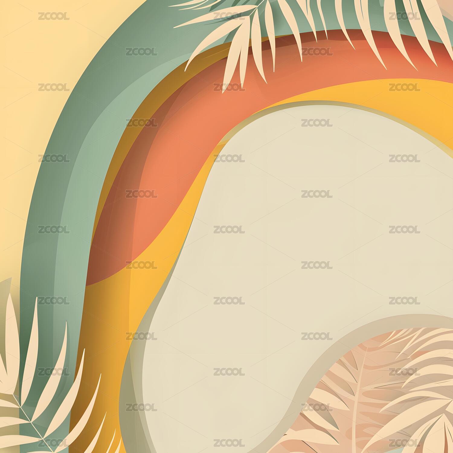 热带植物与几何图形背景