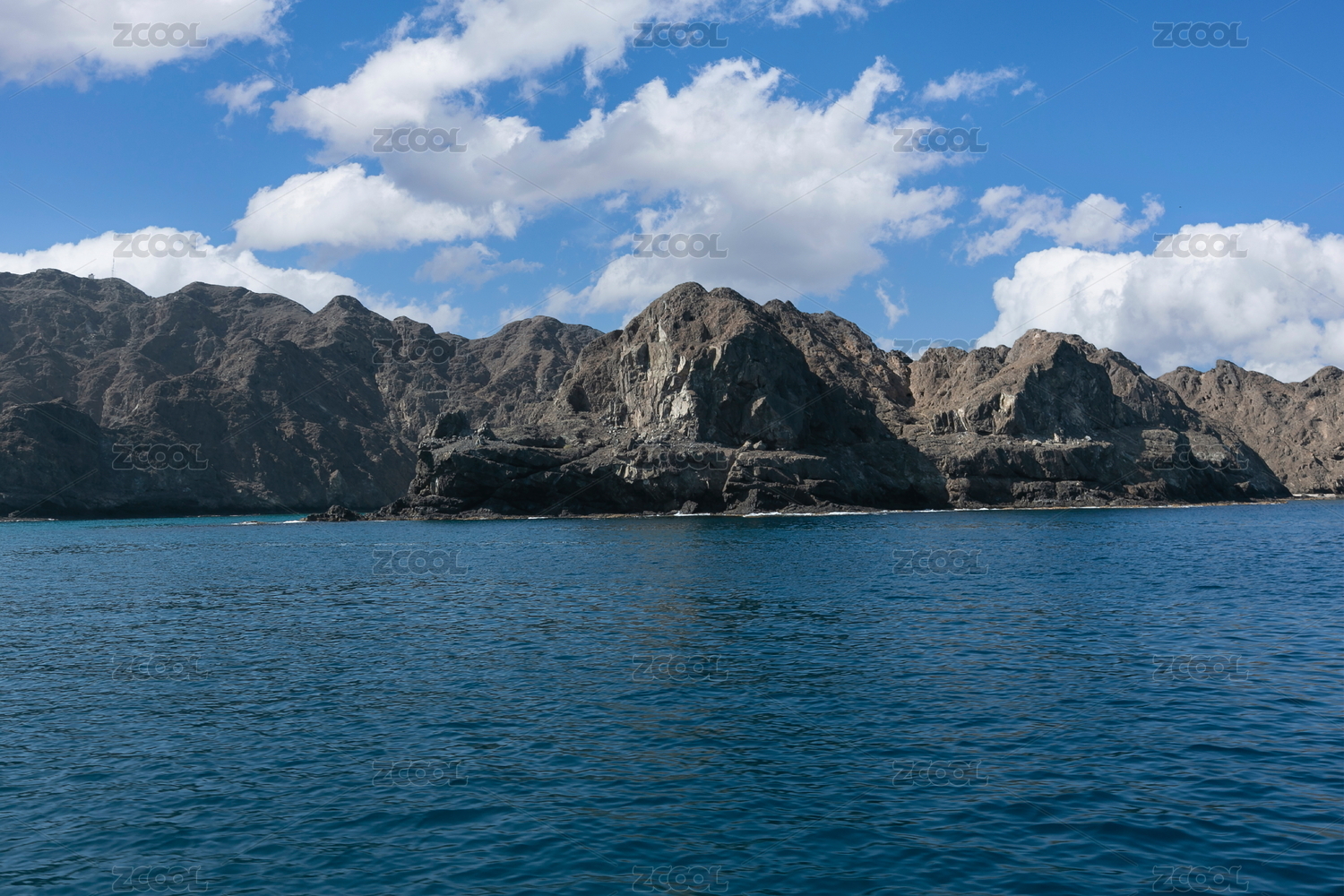 马斯喀特蓝天白云阿曼海湾风光