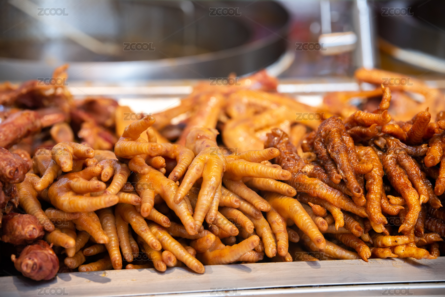放在盘子里的卤味食品、卤货、卤鸭掌、鸭脖