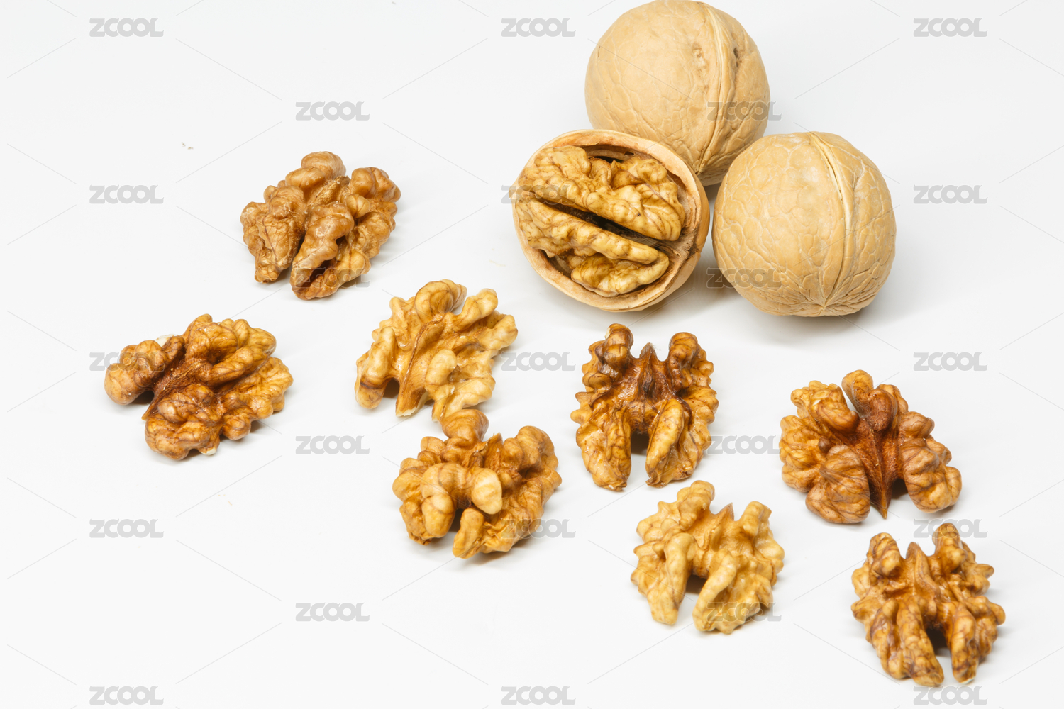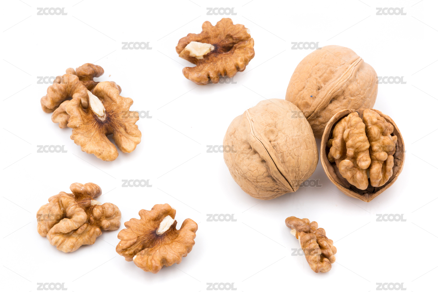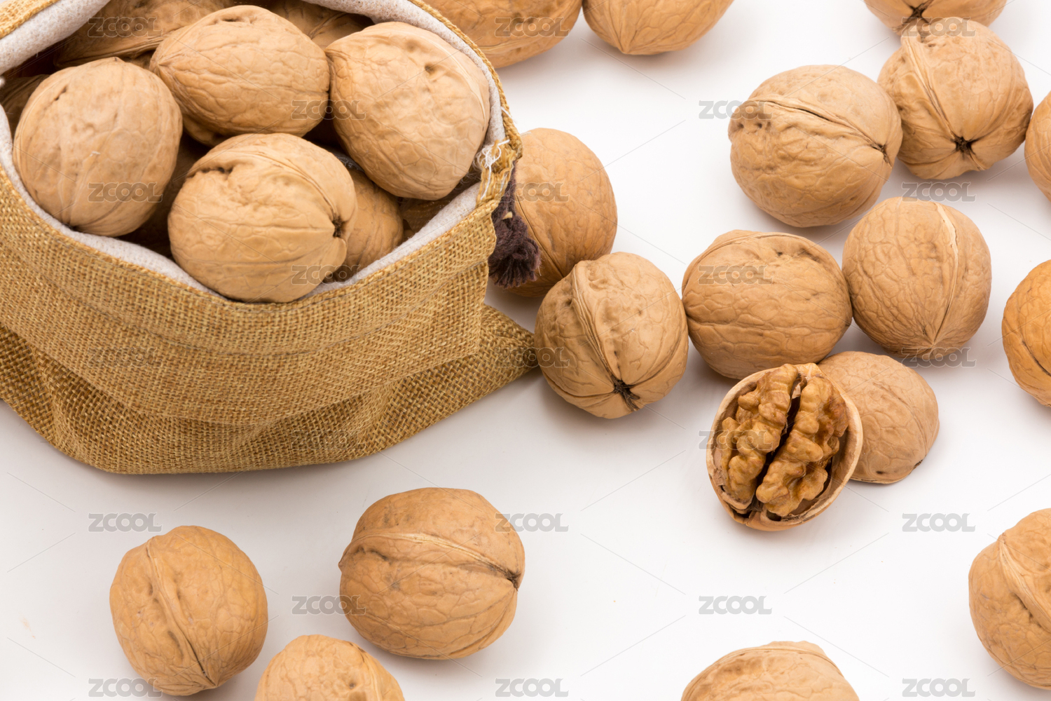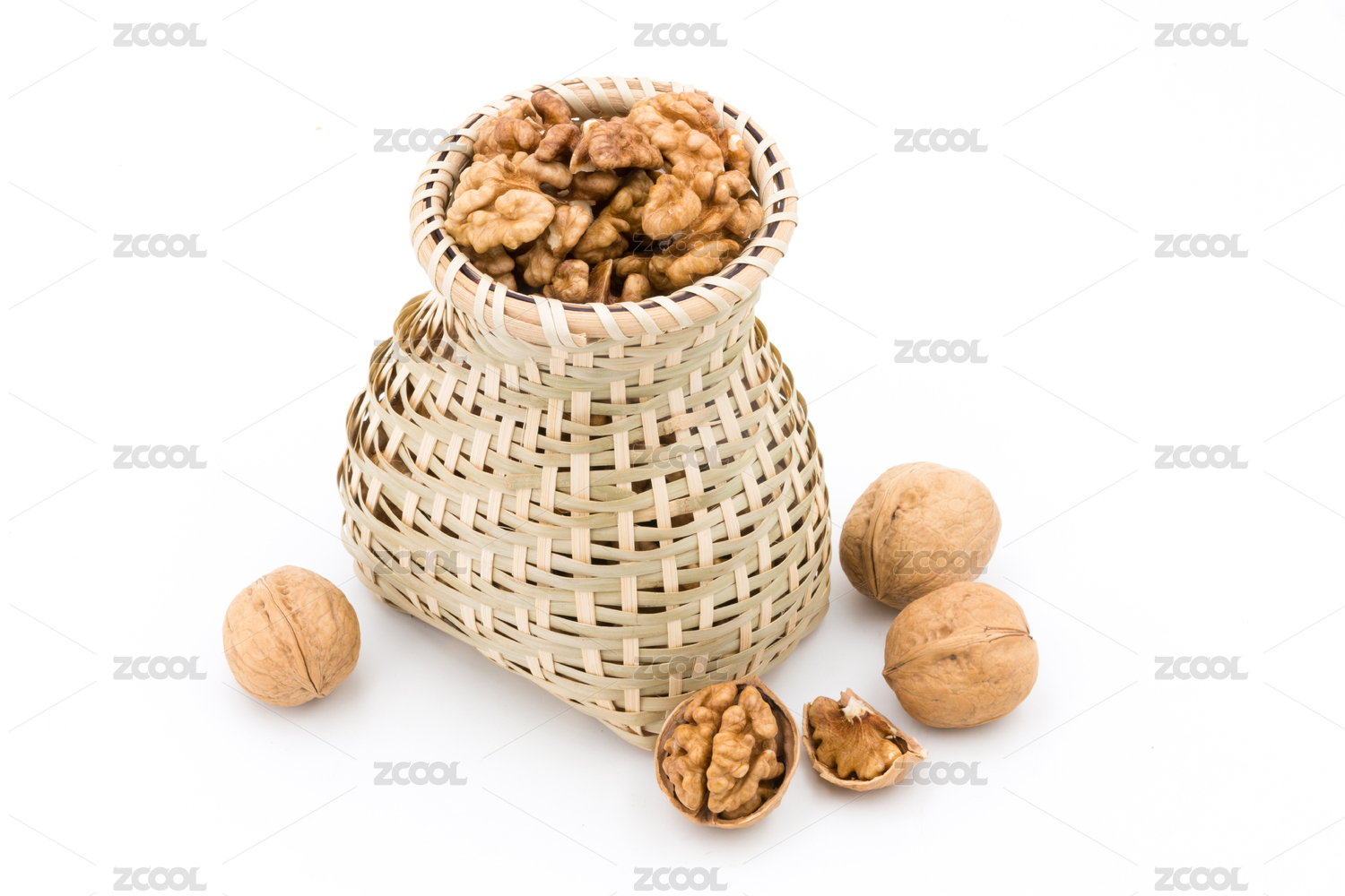 白色,背景,胡桃,核桃,核桃仁,破碎,不完整,剥开,篮子,棕色