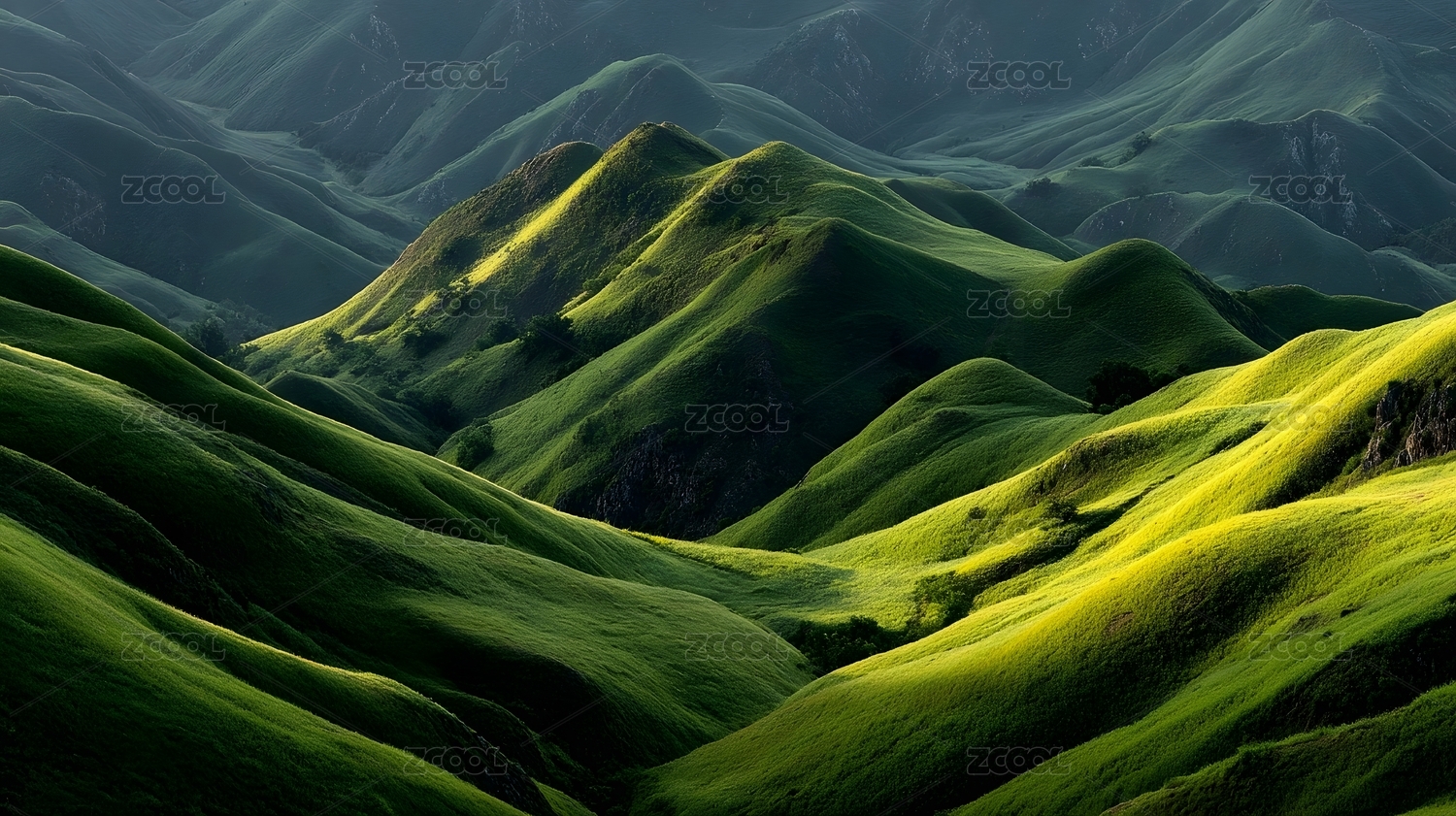 连绵起伏的绿色山丘