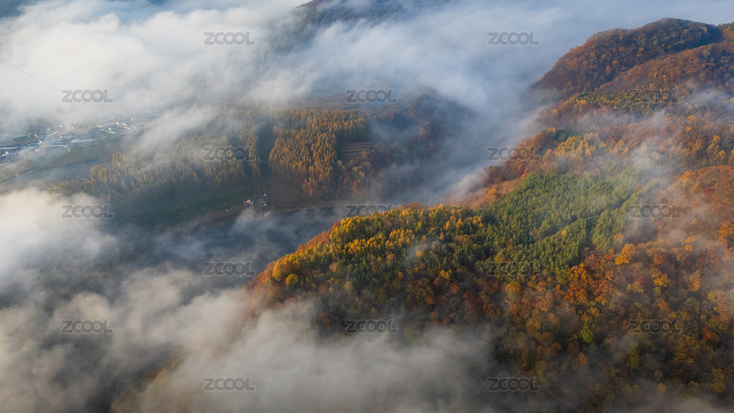 建始高岩子林场秋冬季清晨云雾缭绕五彩斑斓