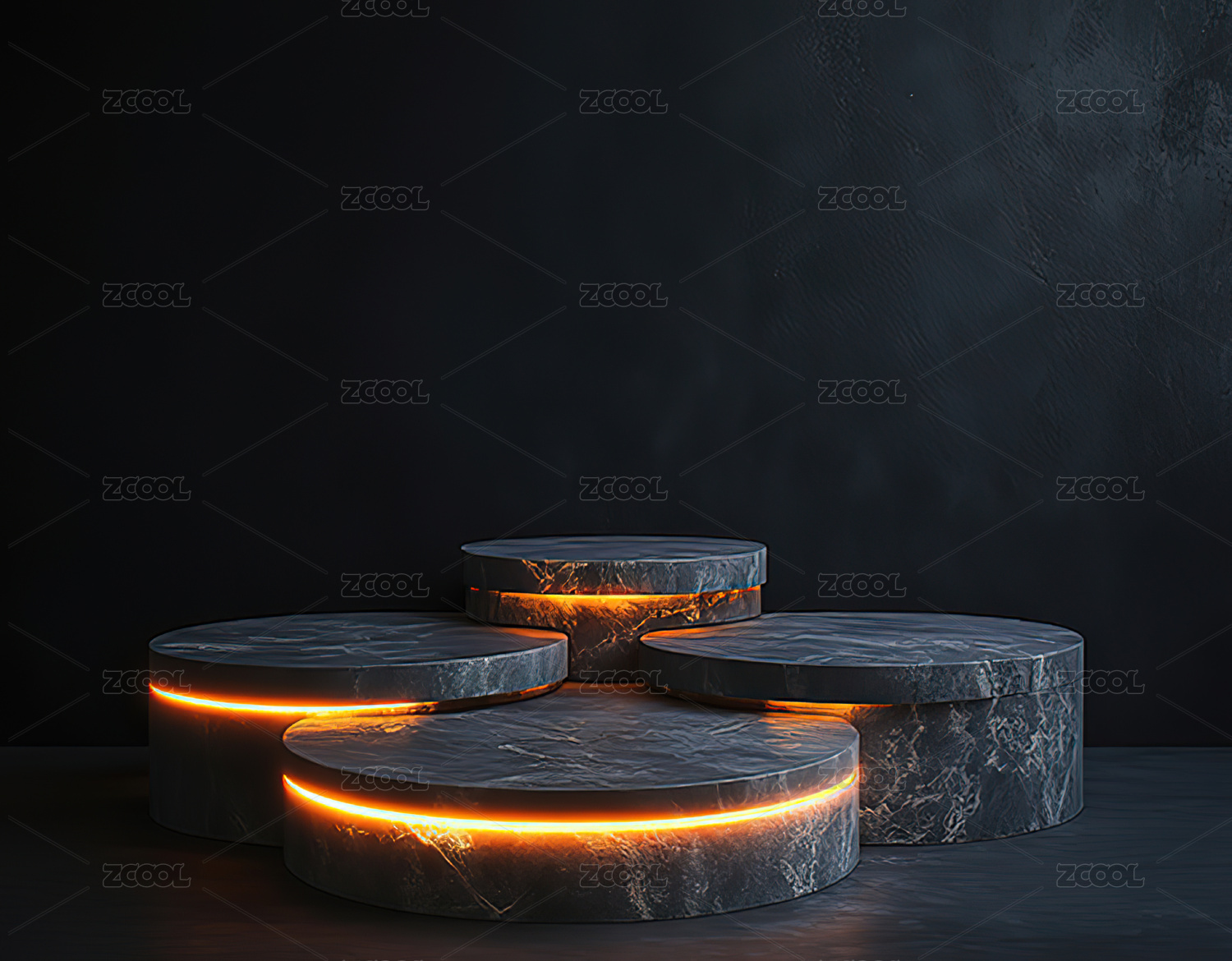 岩石与圆形平台的现代展示场景