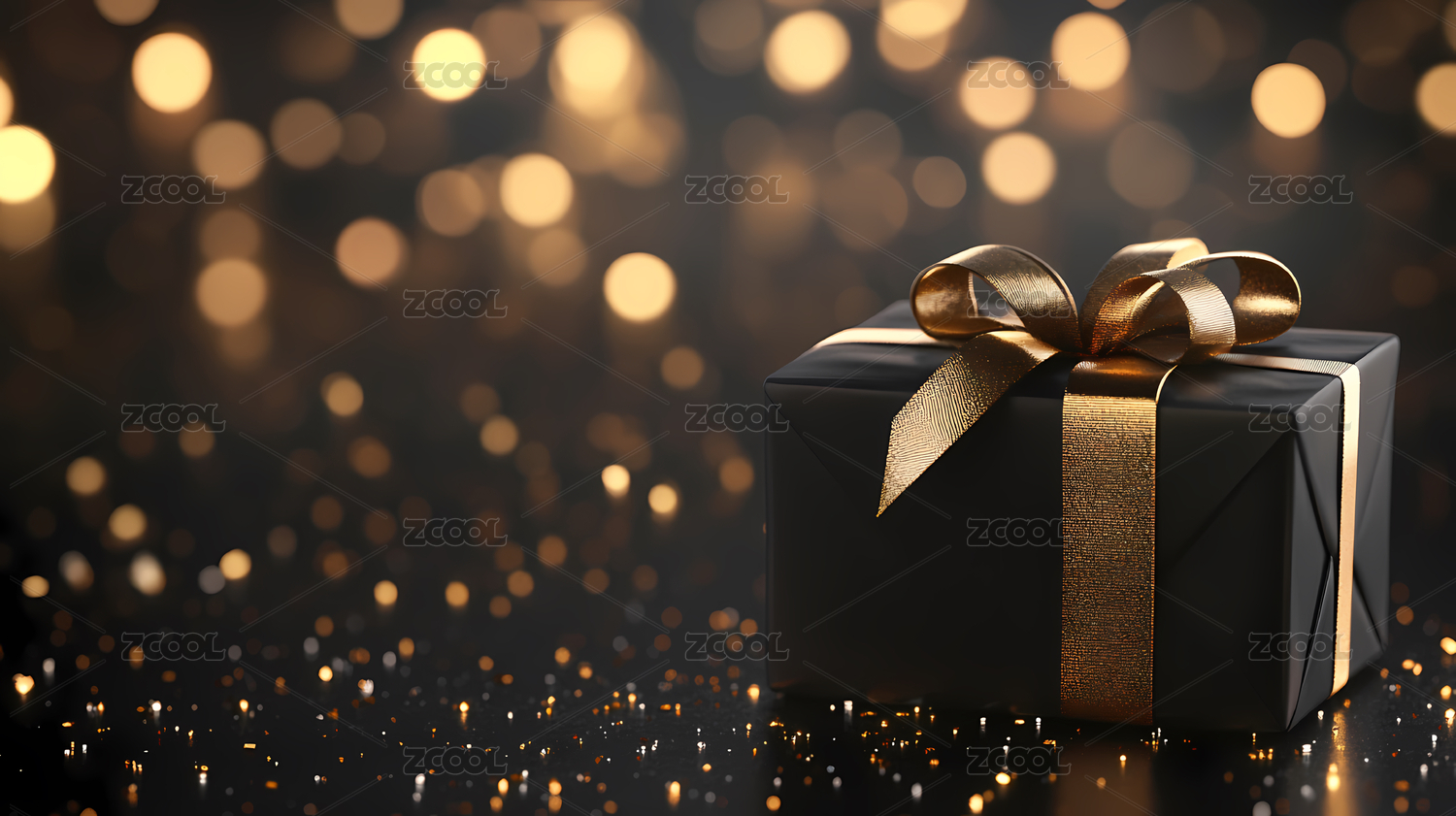 黑色礼盒与金色丝带,奢华闪耀的节日气氛