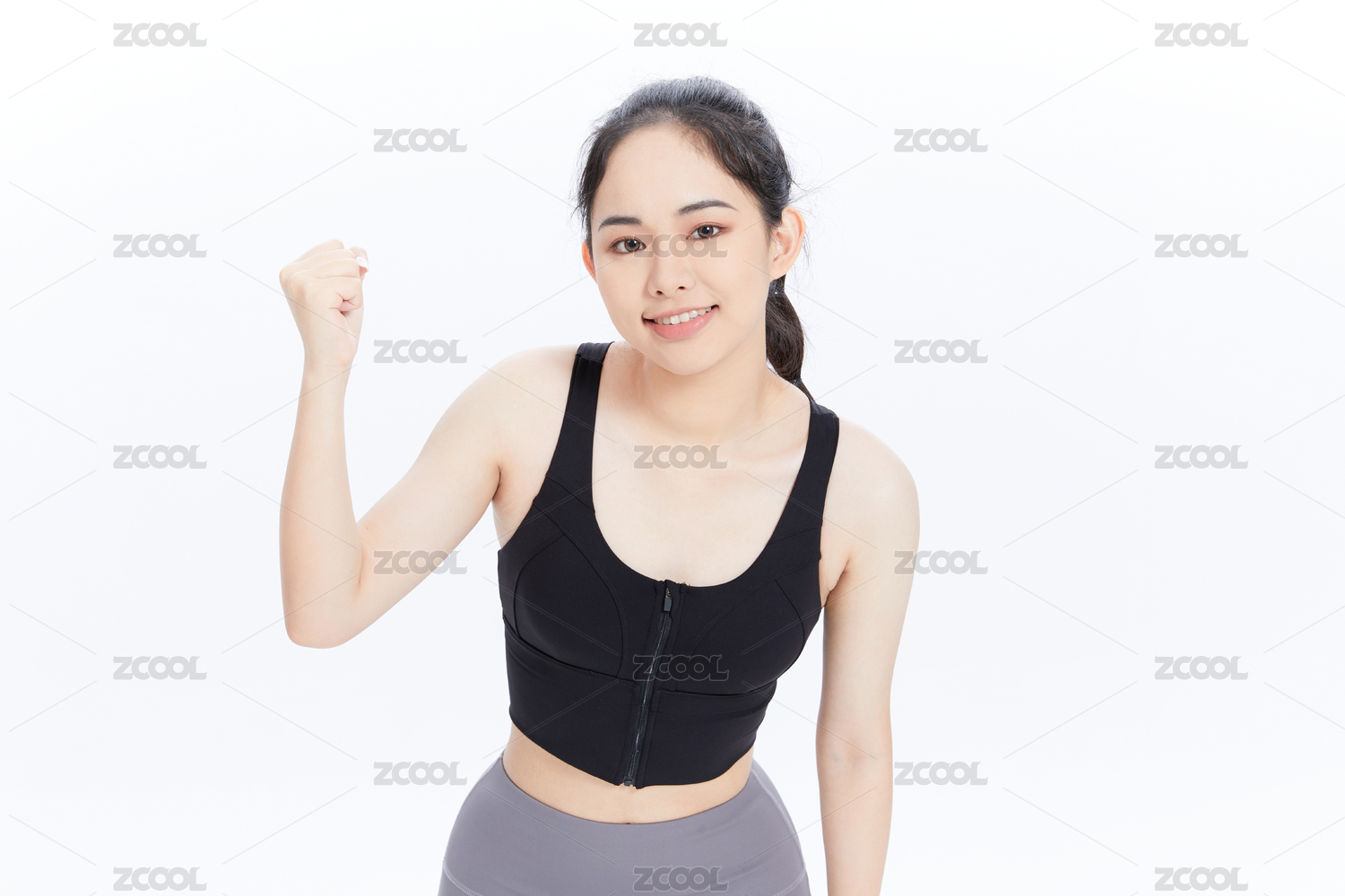 白色背景下 穿运动装的亚洲女性 微笑甜美