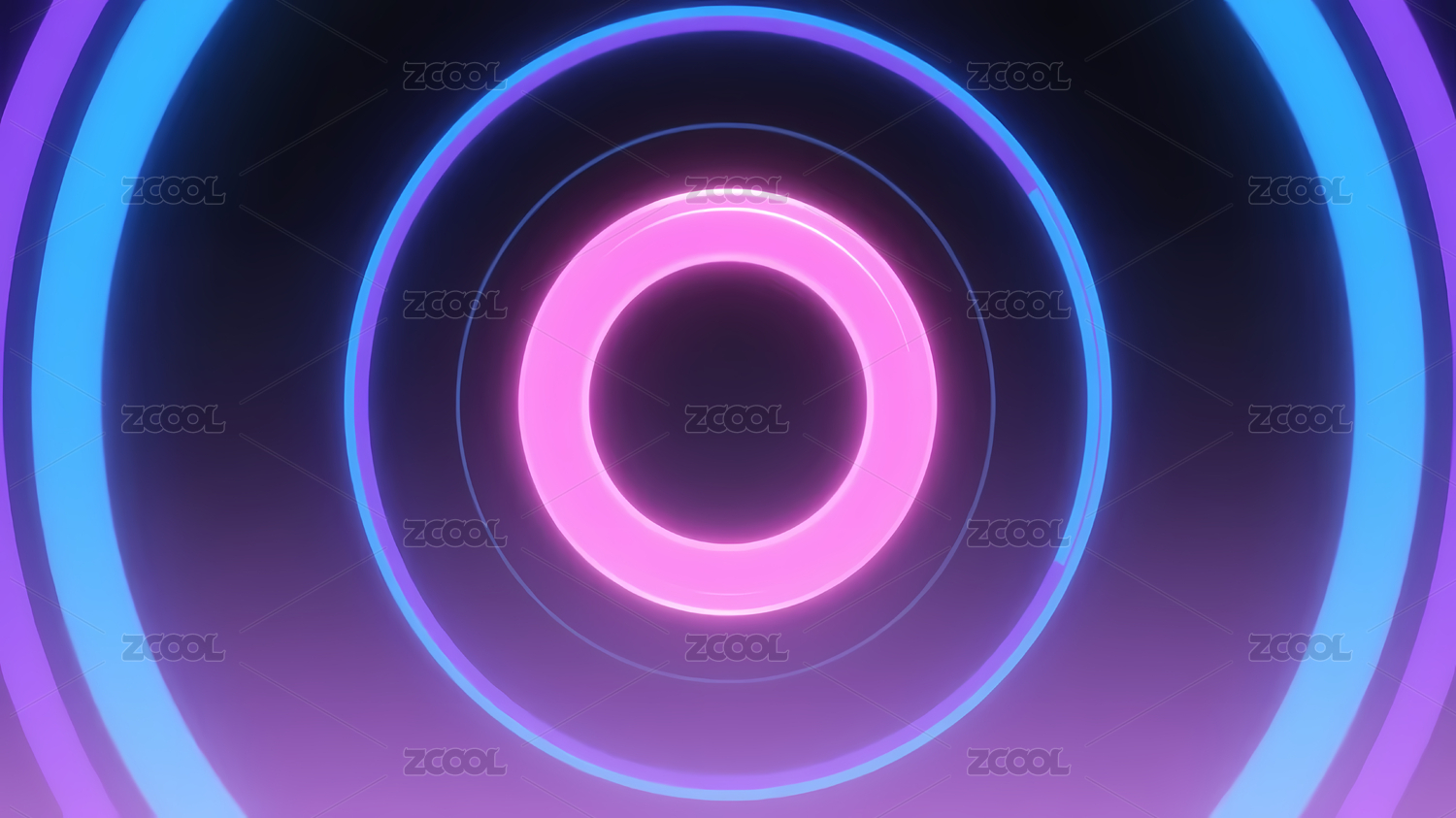 数码蓝粉圆形霓虹灯抽象图形海报网页背景