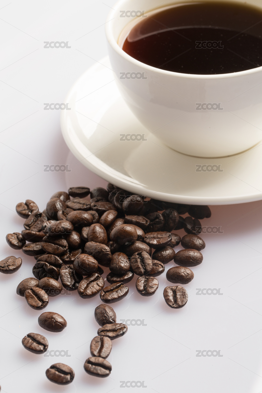 白色的咖啡杯和咖啡豆