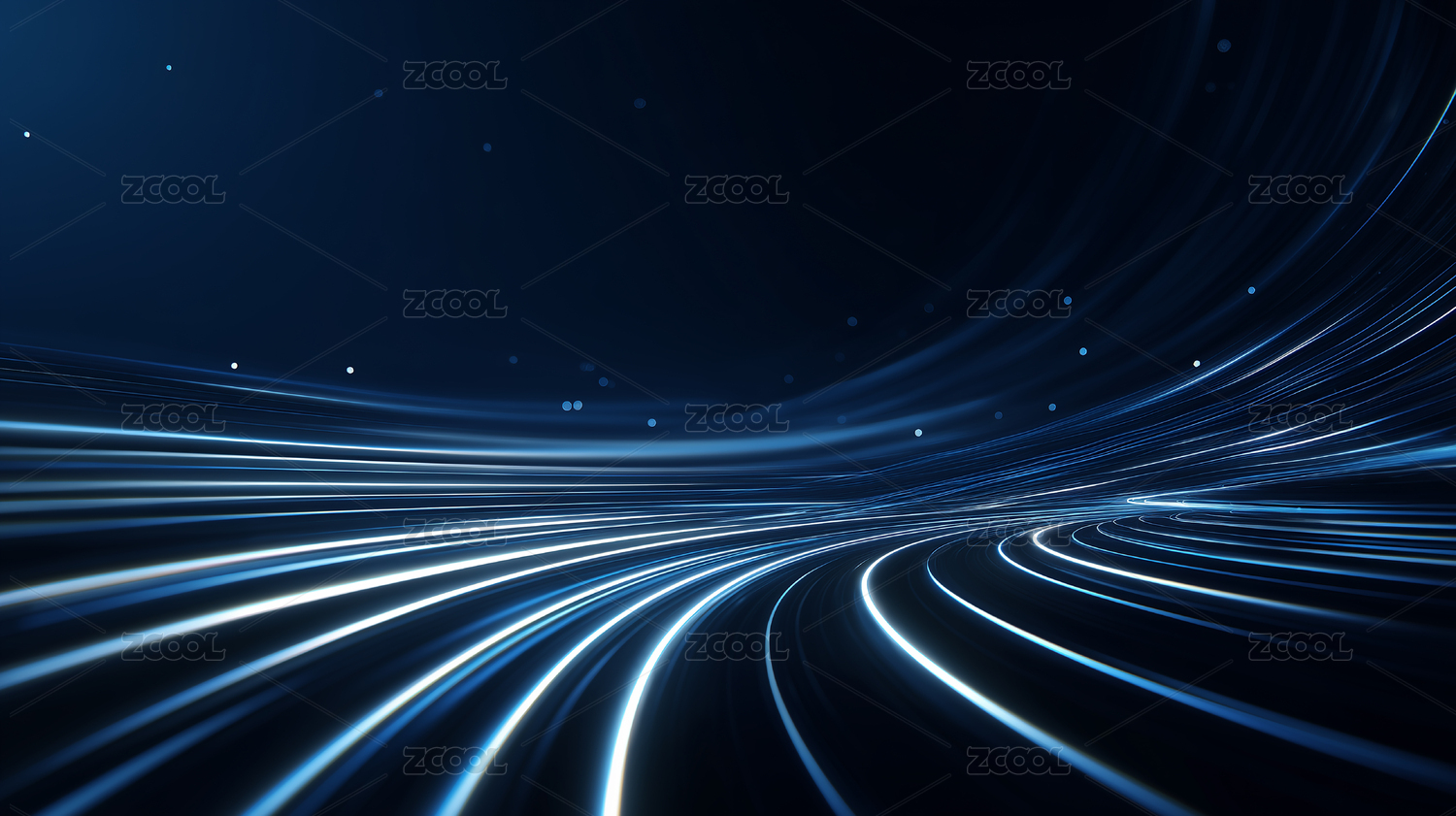 蓝色弧形发光光线粒子科技背景