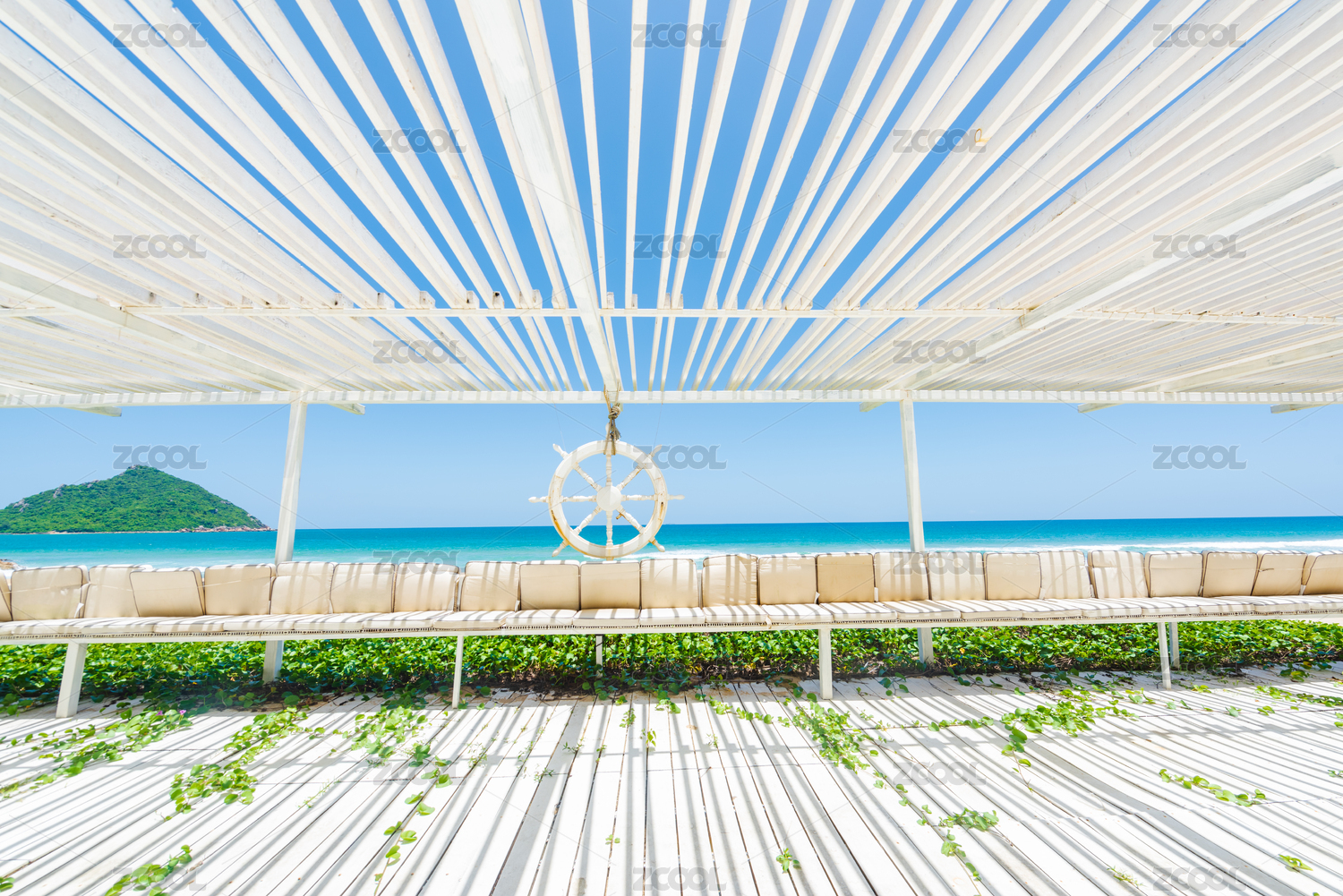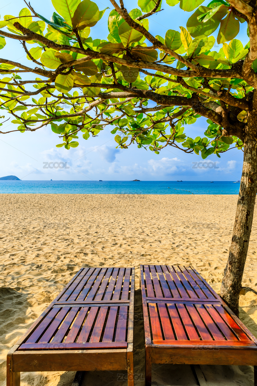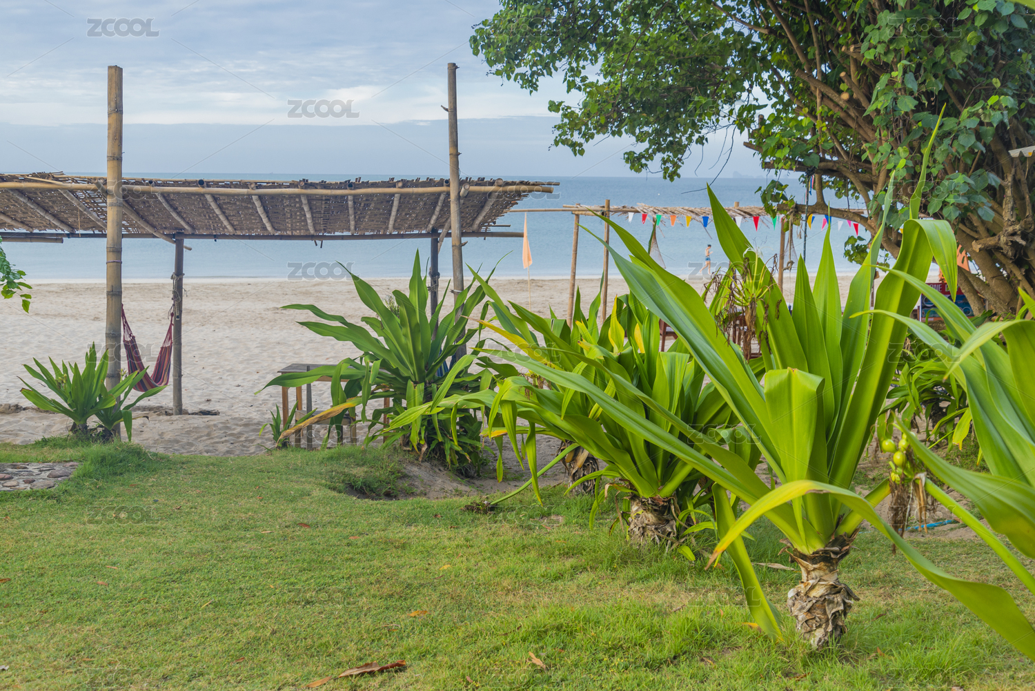 泰国甲米的兰塔岛的沙滩草棚躺椅