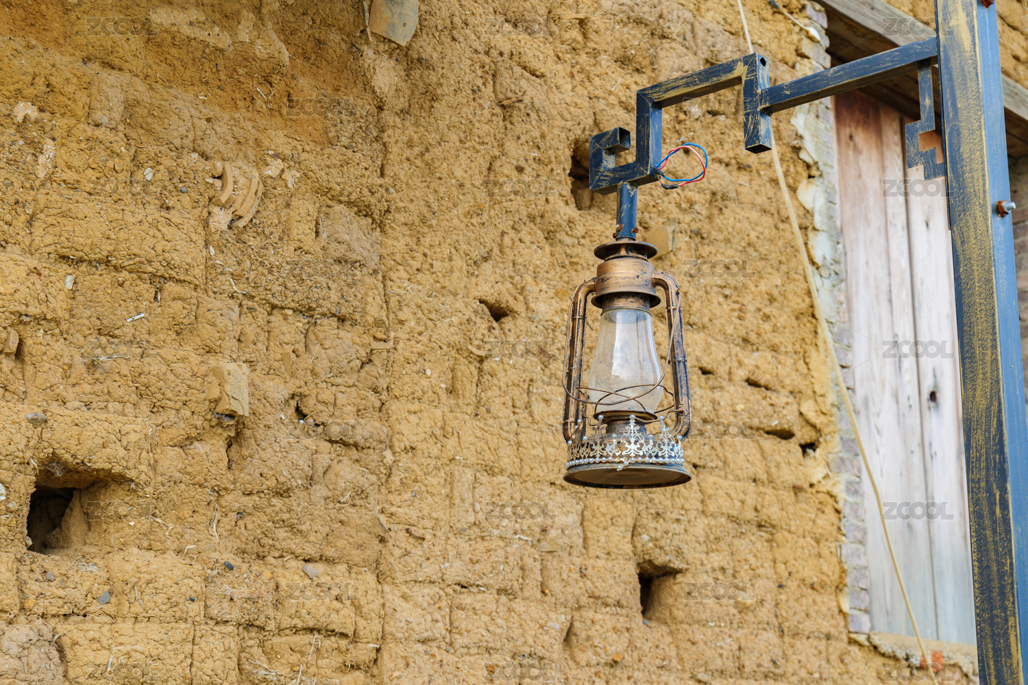 云南楚雄禄丰市黑井古镇红砂石墙上的马灯