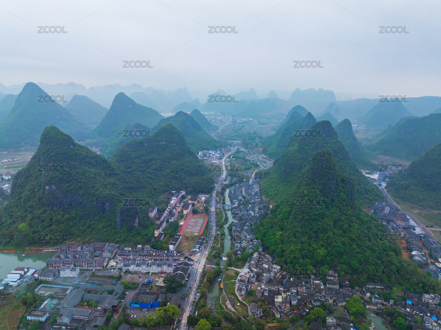 广西,贺州,黄姚古镇,山,喀斯特,古镇,村庄,村落,古民居,阴天