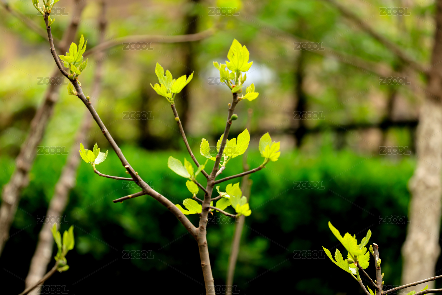 春天,白玉兰凋谢后长出来的鲜绿的新芽特写