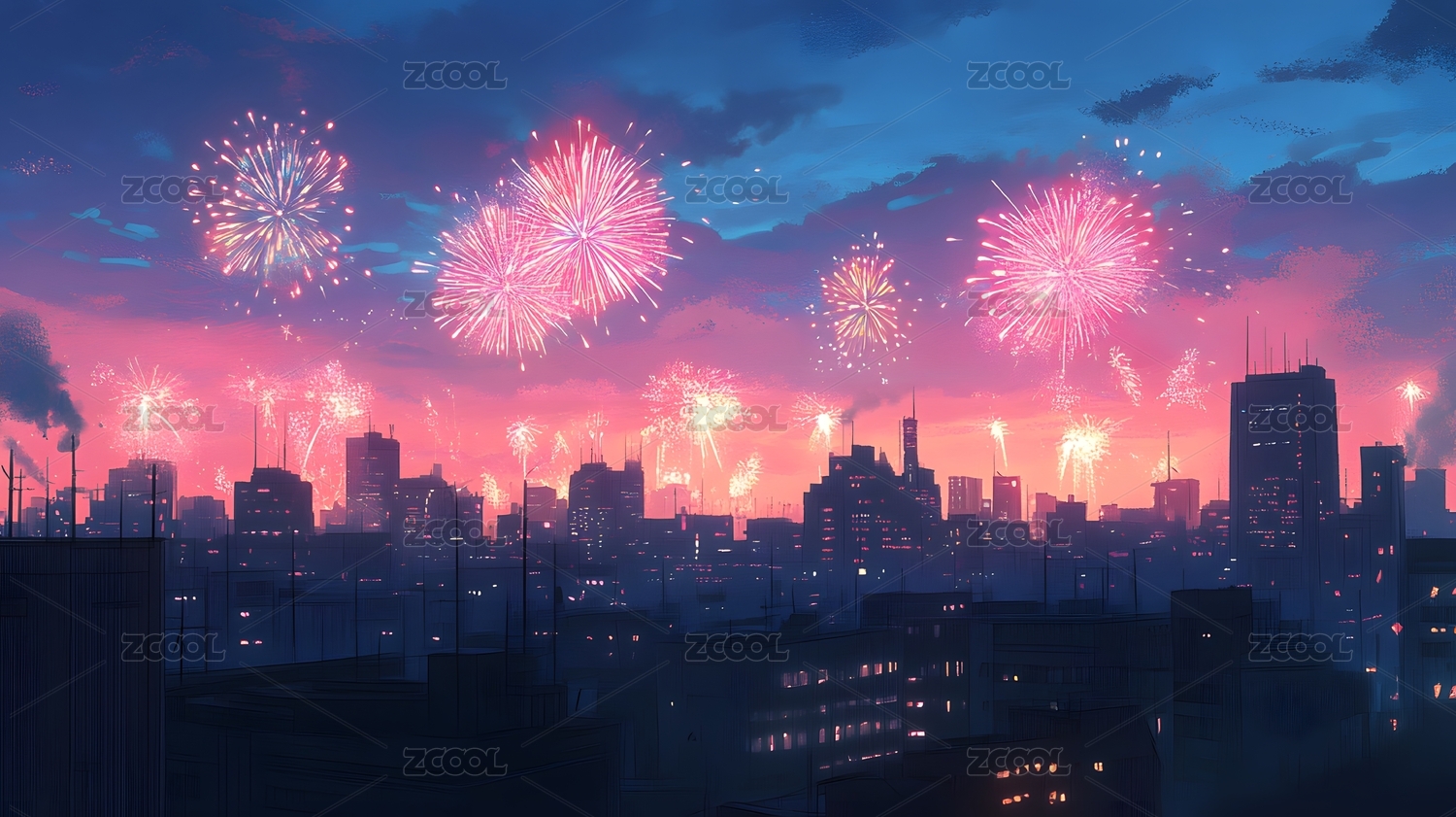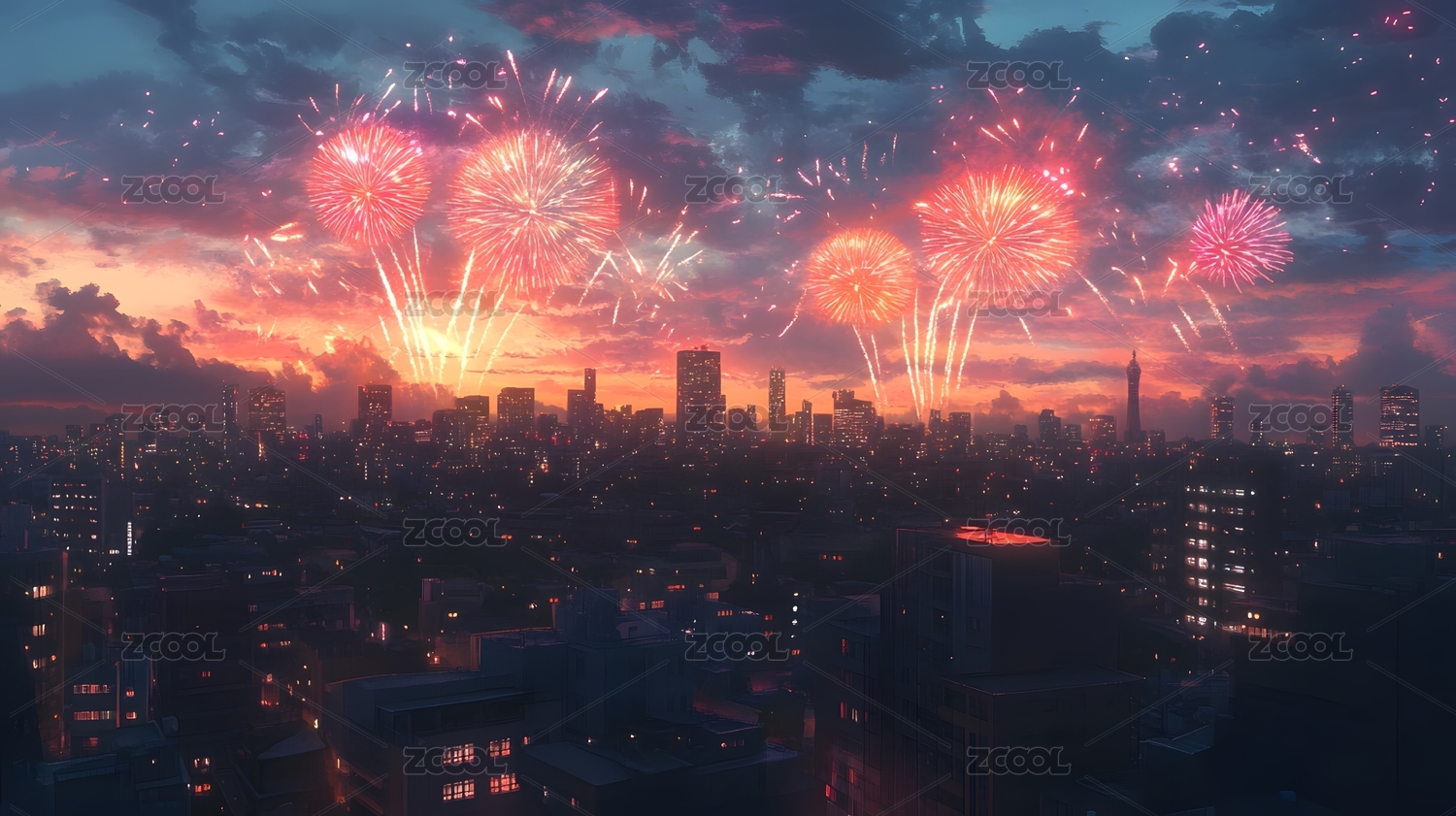夜晚,自然,元宵节,春节,庆祝,浪漫,风景,海报,云,放焰火