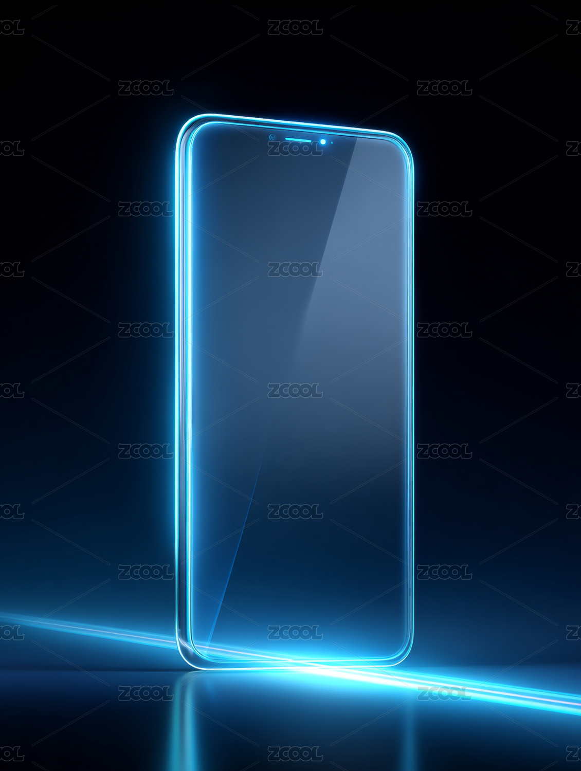 带蓝色发光边框的黑色手机