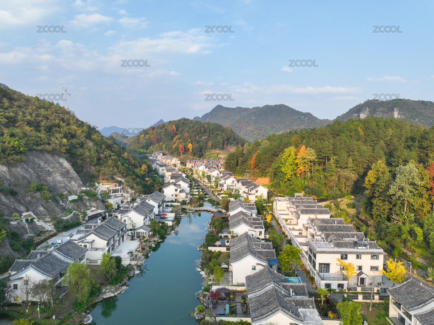 航拍中国浙江丽水傍晚时分的古堰画乡