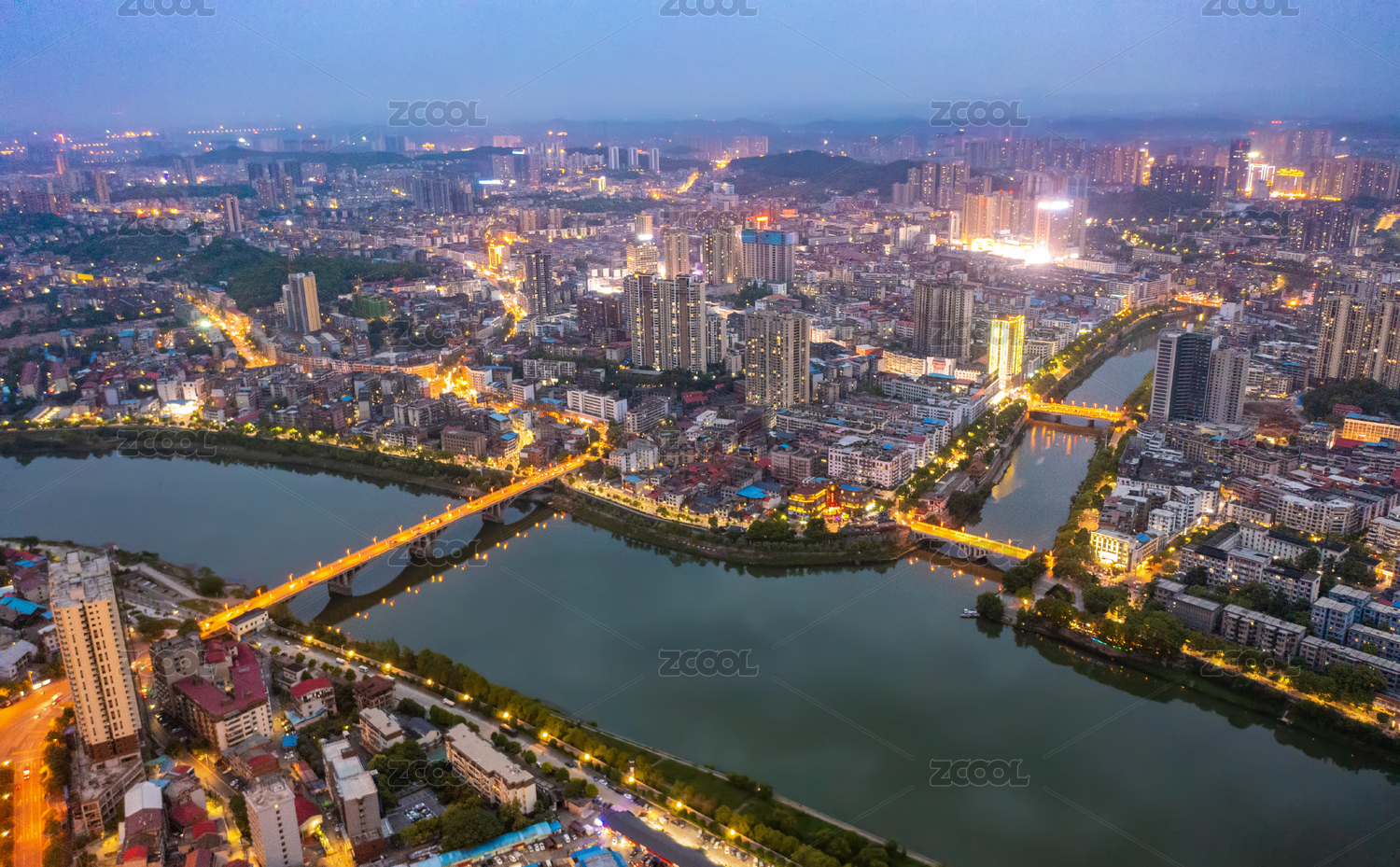 衡阳蒸水桥航拍夜景